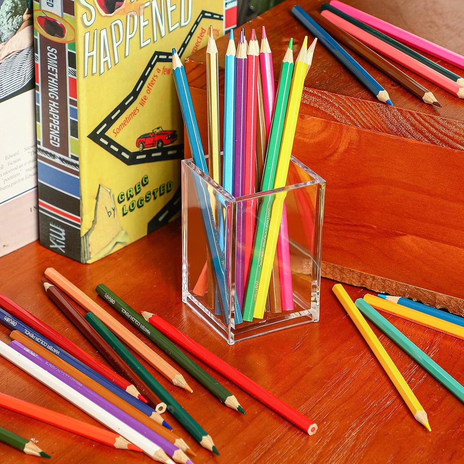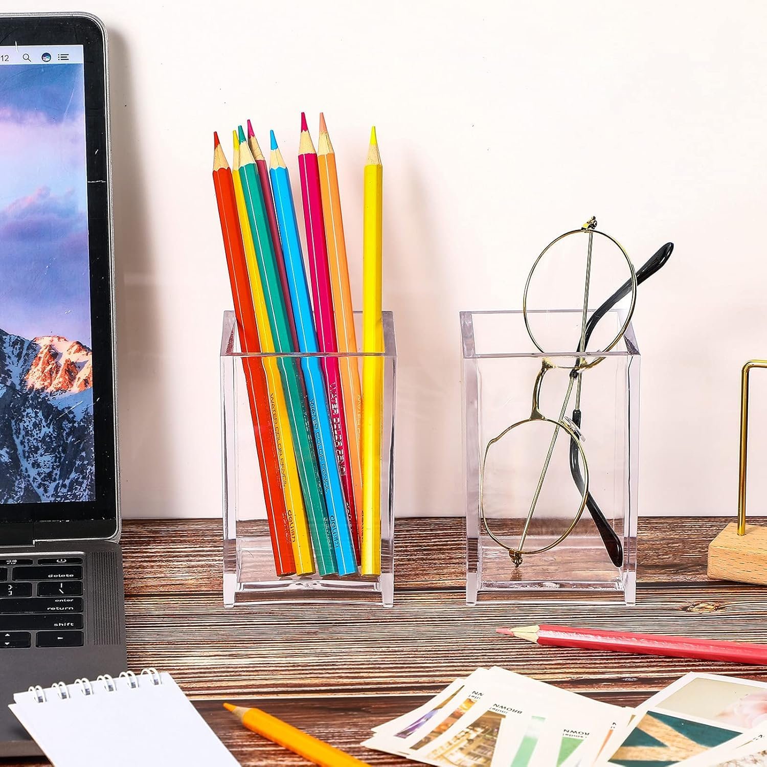 Dream One 6pcs Clear Acrylic Pen Holder Set–Transparent Desk Organizers for Home, Office, and School–Multi-Use Storage Cups for Makeup Brushes, Pens, Pencils, Markers, or Craft Supplies ACR019