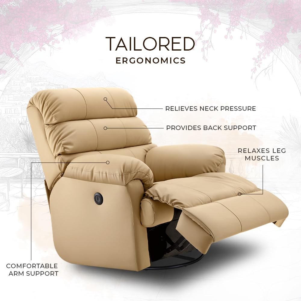 Duroflex Avalon Posture Pro Single Seater Leatherette Motorized Rocking & Rotating Recliner | 1 Year Warranty | Pocket Spring Support | 2 Zone Backrest | 270⁰ Rotation – Beige