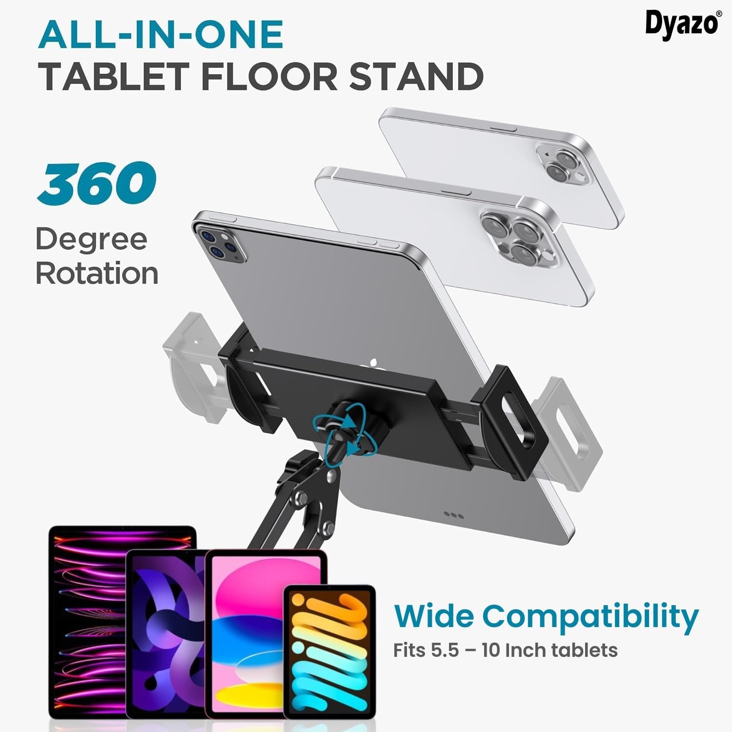 #Dyazo #Adjustable #Floor #Stand #Rotating #Gooseneck #Long #Arm #Dual #Mobiles #Tablets #Holder #Stable #Base #Fits #Inch #Compatible #Tablets #Galaxy #Tab #Mobile #Phones #Black