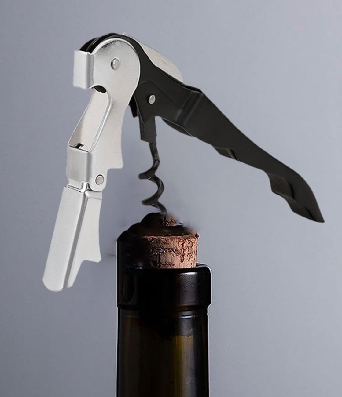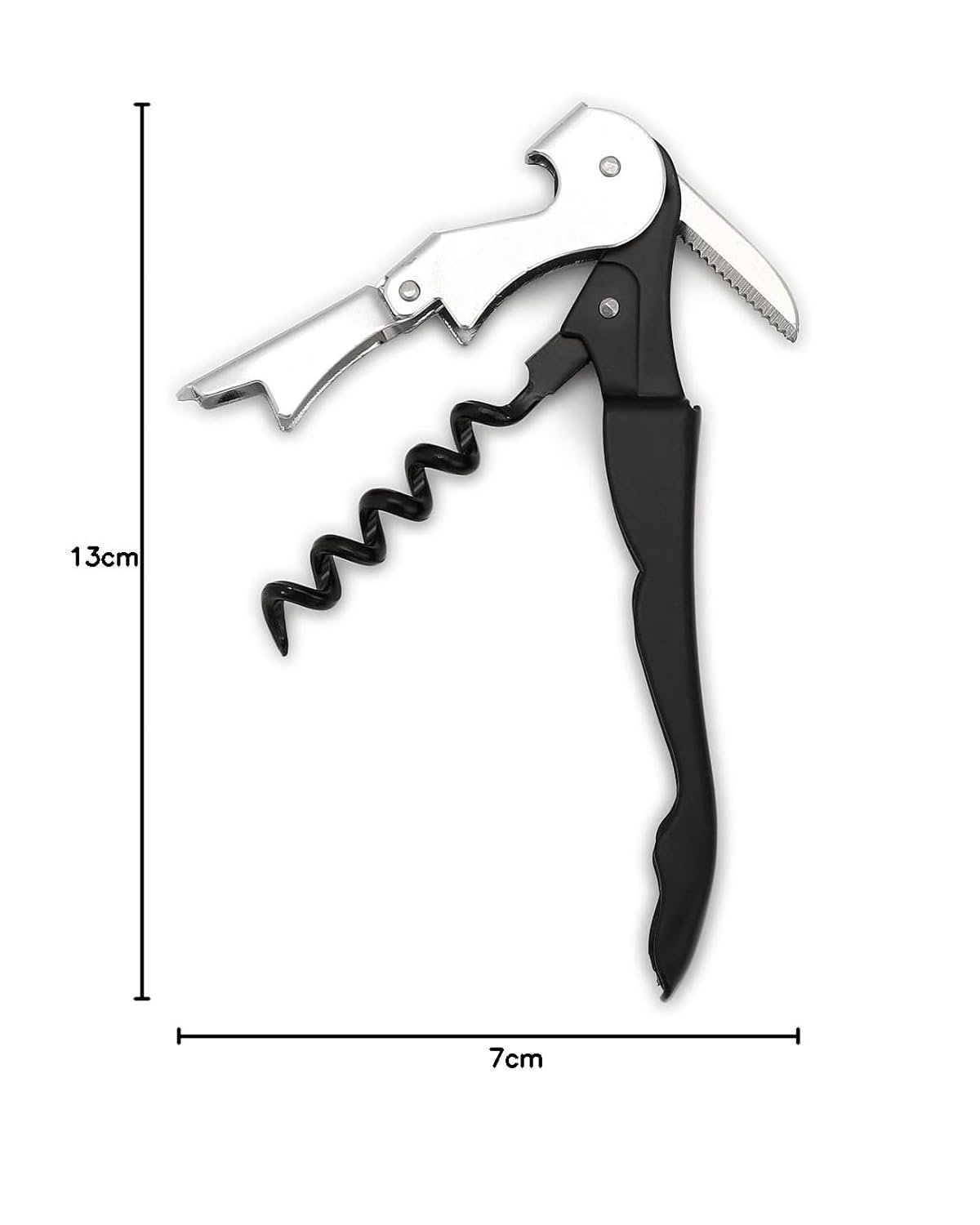 Dynore Stainless Steel Wine Cork Screw Sommelier Knife Style W/Bottle Opener, Black, Medium (DS_1229)