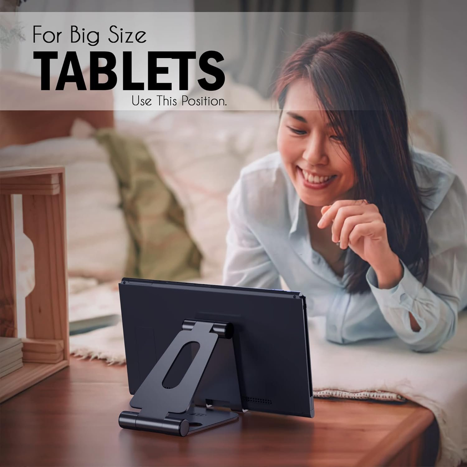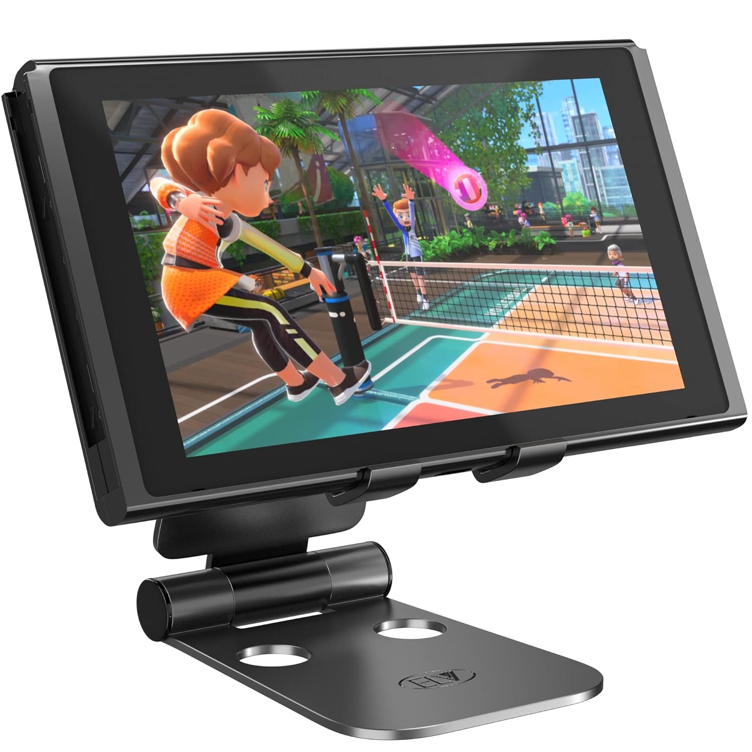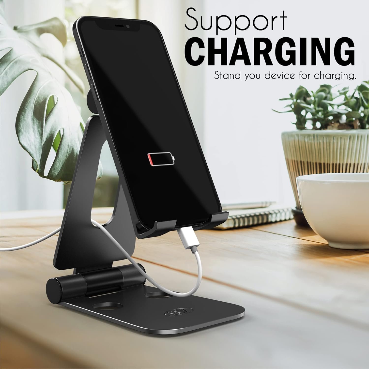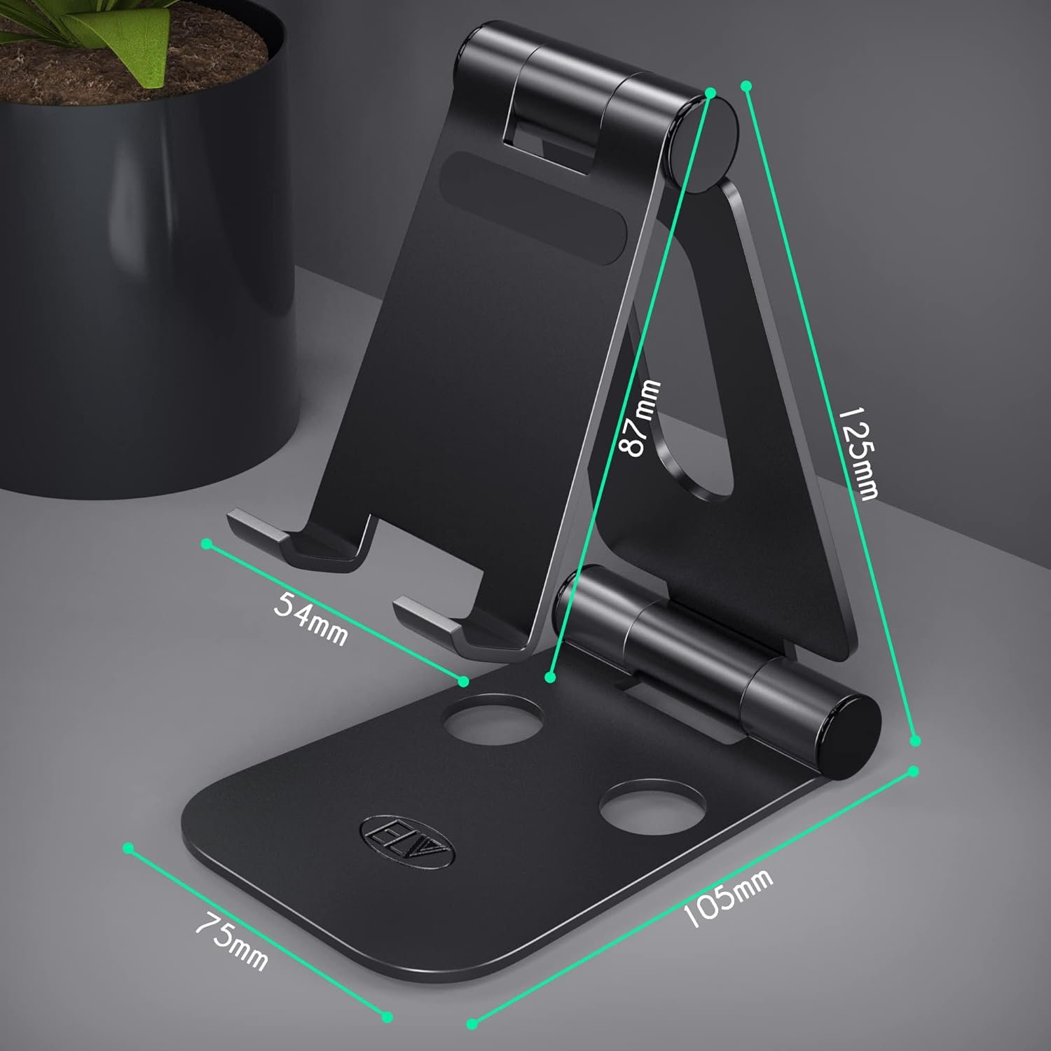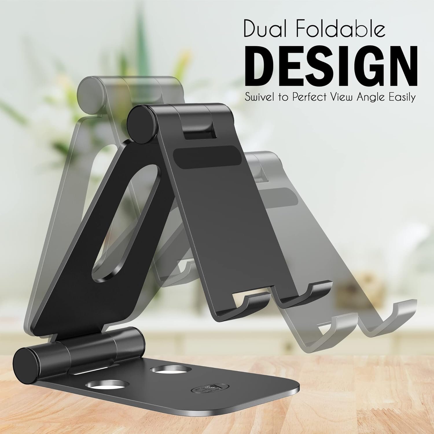 ELV Aluminum Adjustable Mobile Phone Foldable Holder Tabletop Stand, Dock Mount for All Smartphones, Tabs, Kindle, iPad (Black)