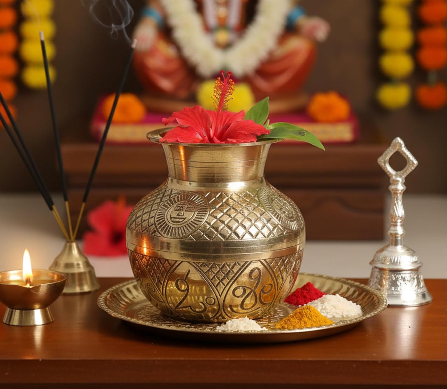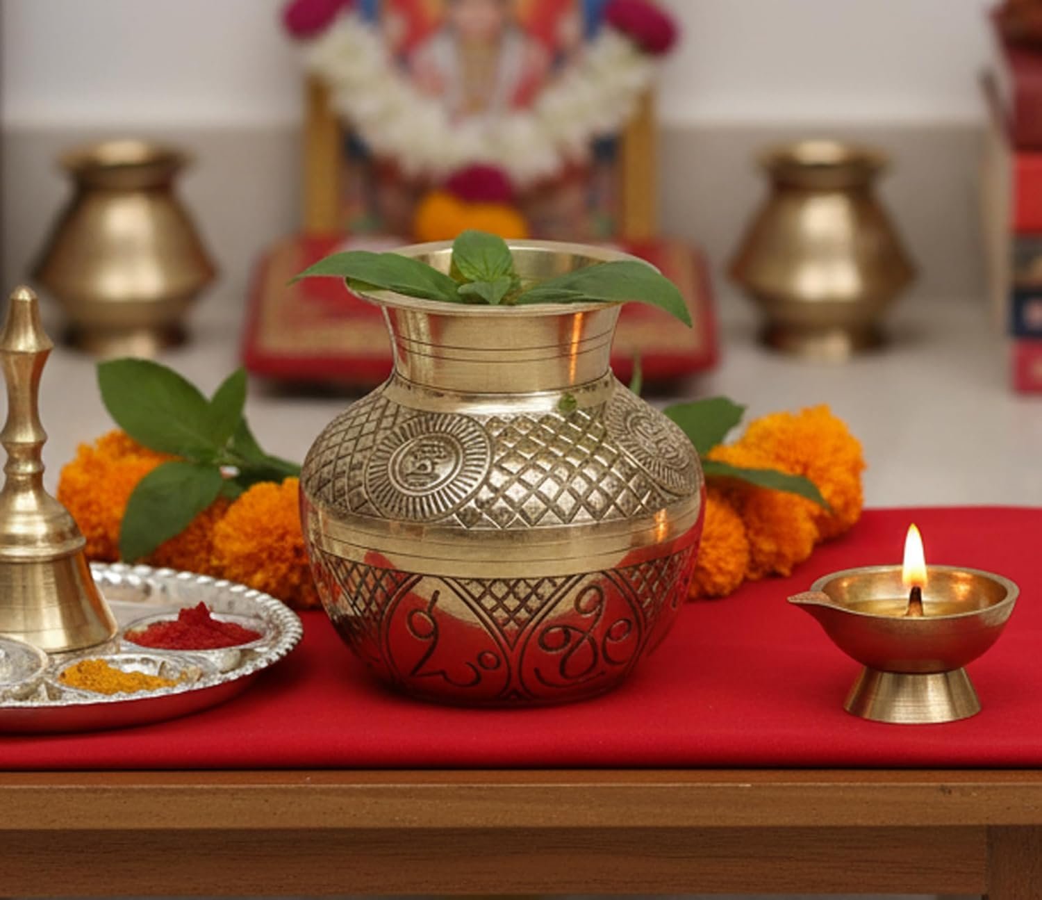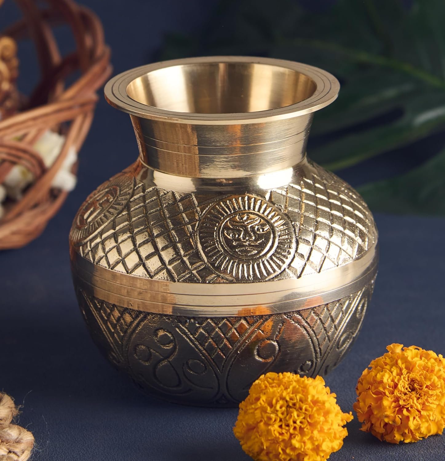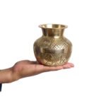 Esplanade Brass Kalash for Pooja – 4.5″ Puja Items for Home Temple Mandir, Lota Pot for Pooja, 100% Brass Utensils for Kitchen, Engraved Peetal Lota