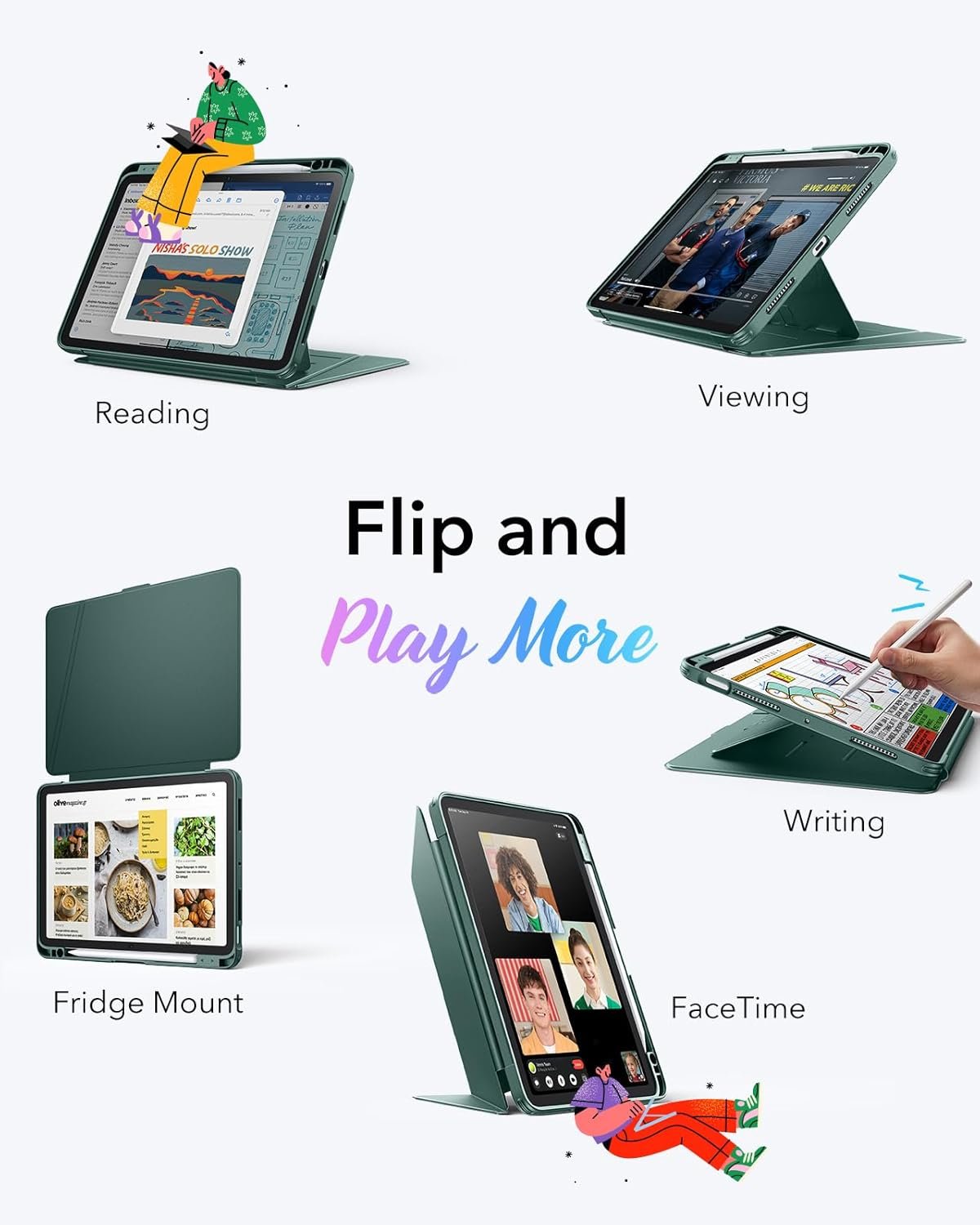 #ESR #iPad #Air #Inch #M3M2 #Case #iPad #Air #5th4th #Gen #Vertical #Stand #Cover #Multi #Stand #Angles #UltraStable #Case #Pencil #Holder #Flip #Series #Midnight #Green
