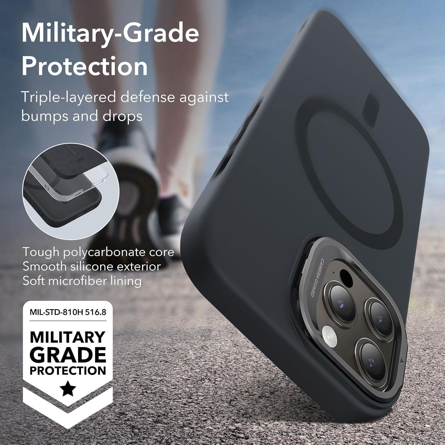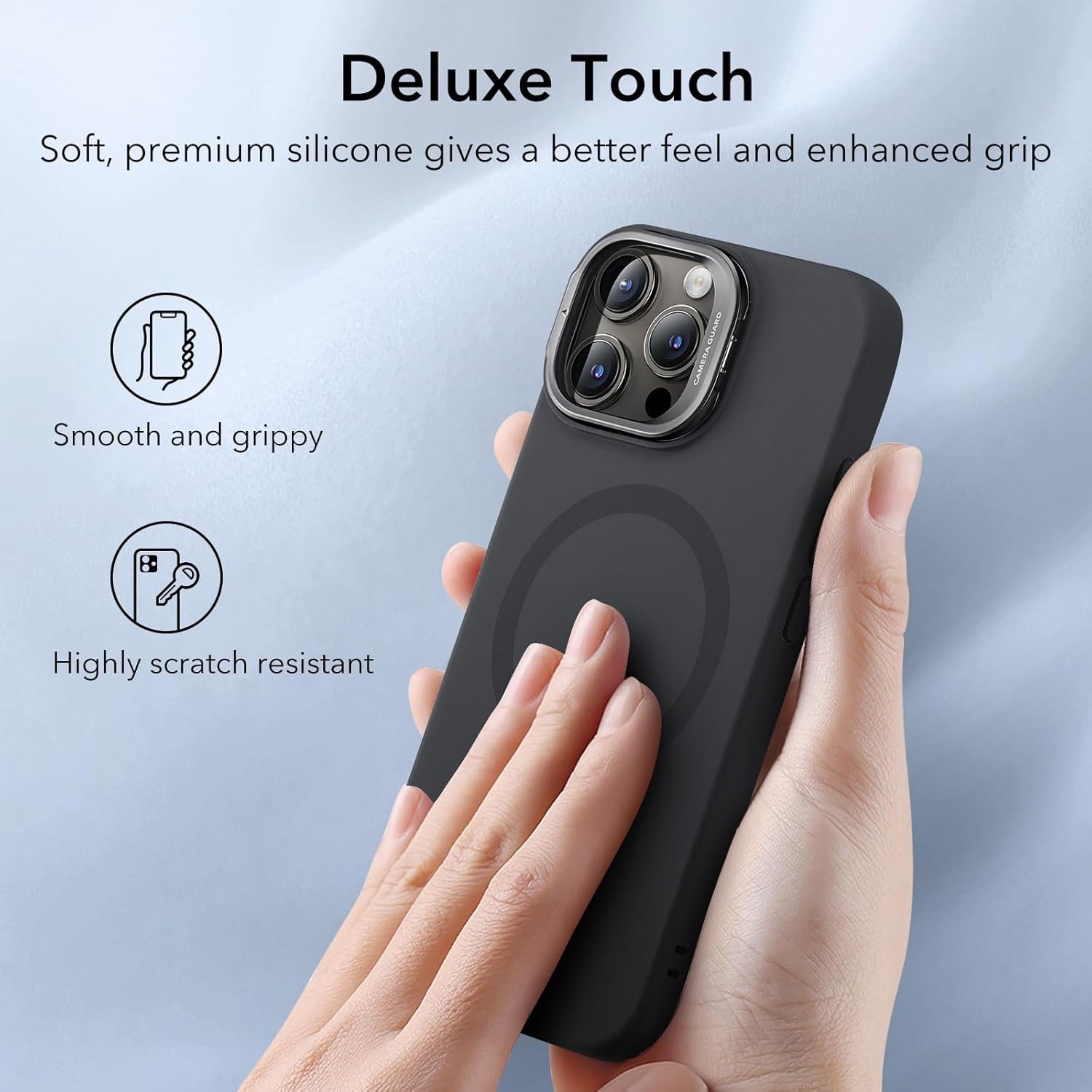 ESR for iPhone 15 Pro Max Case, MagSafe Silicone Case with Stand, Military-Grade Protection, Built-in Camera Stash Stand, Magnetic Phone Case for iPhone 15 Pro Max, Cloud Series, Black