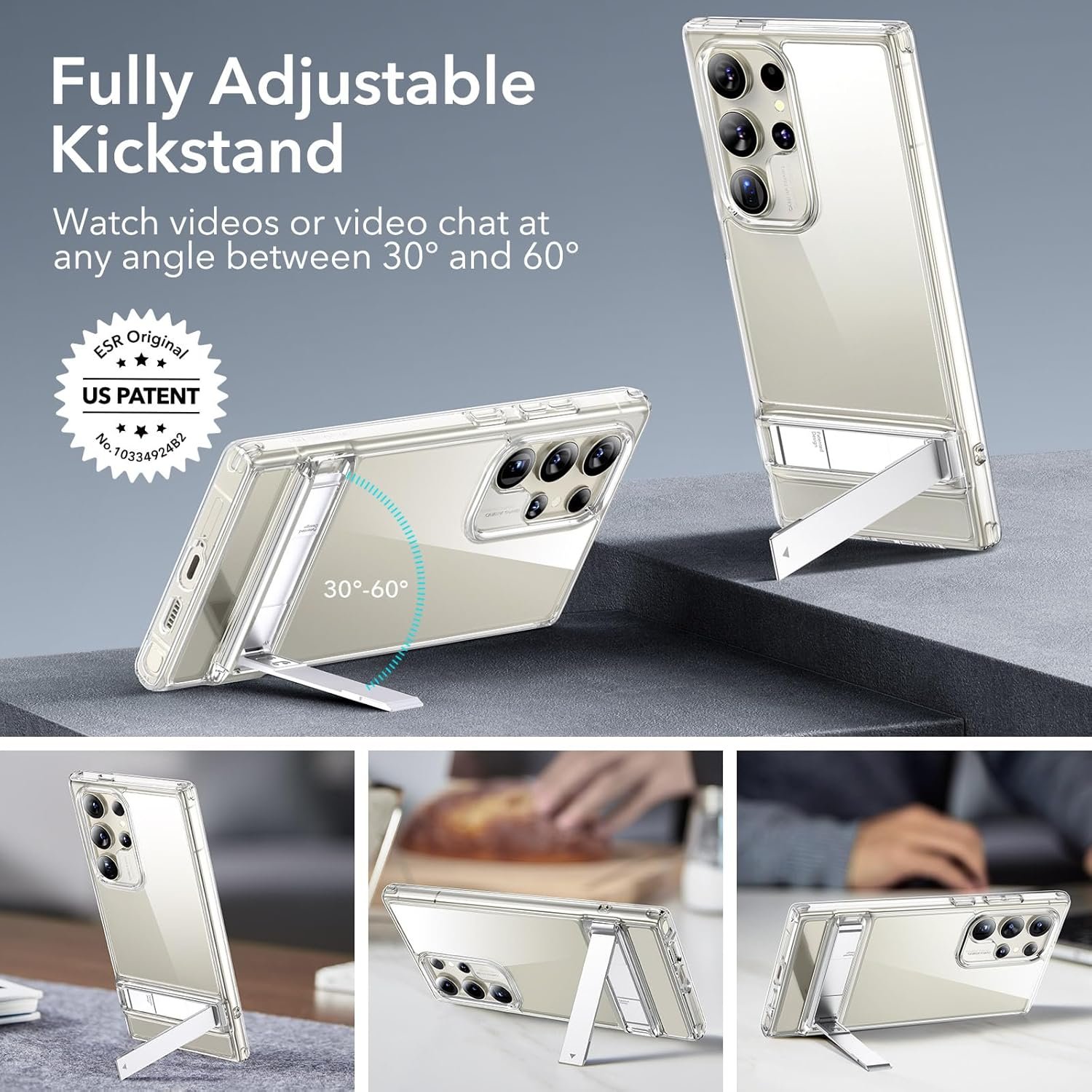 ESR for Samsung Galaxy S24 Ultra Case, Kickstand S24 Ultra Cover with 3 Stand Modes, Military-Grade Drop Protection, Shockproof Slim Phone Case with Patented Kickstand, Boost Series, Clear