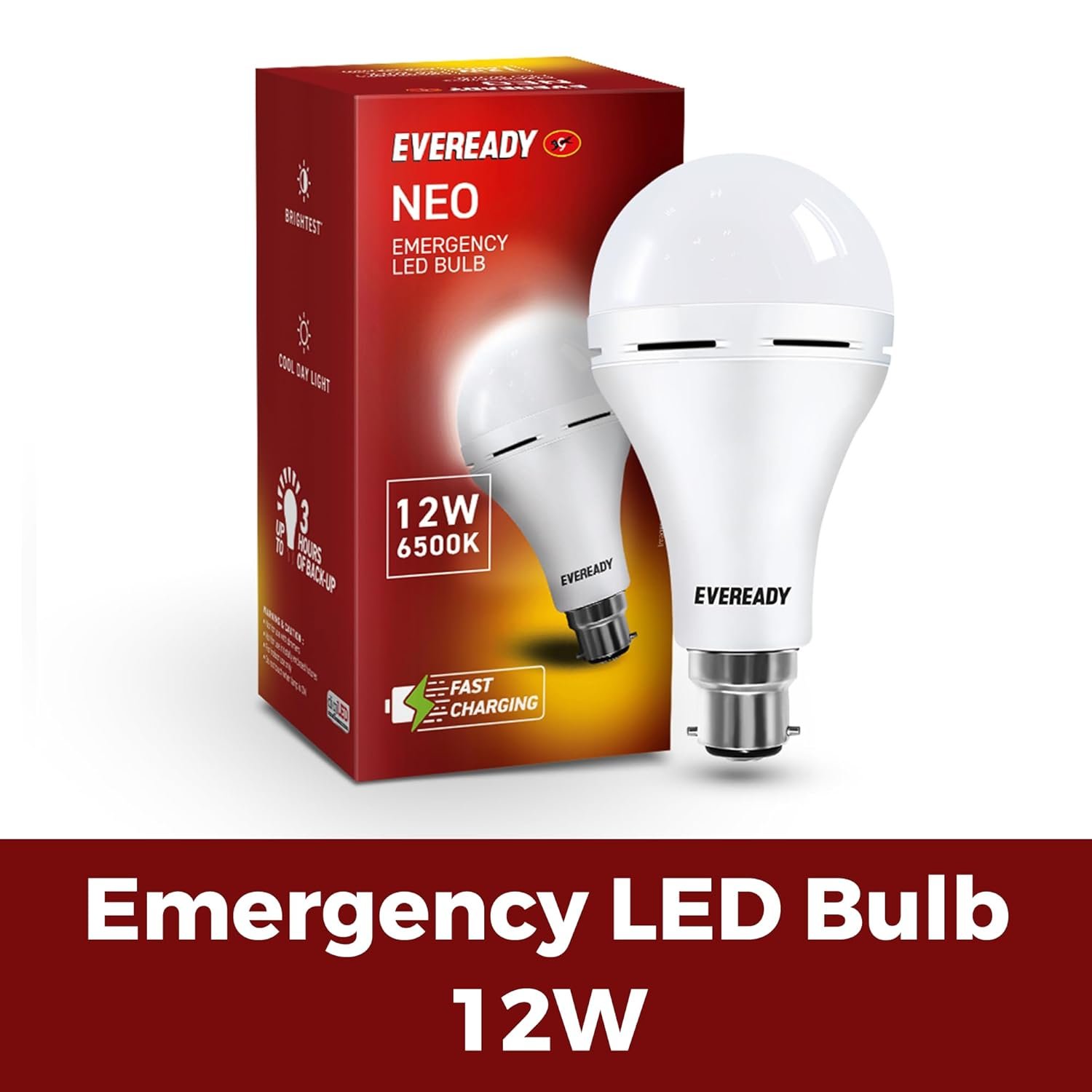 Eveready 12W Emergency Inverter LED Bulb, Cool Day Light (6500K), Rechargeable Bulb with 3 Hours Backup, Ideal for Powercuts, Energy Efficient, B22 Base, Pack of 1