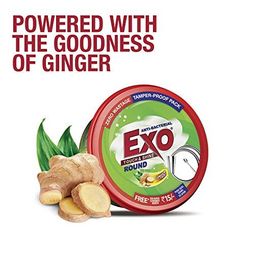 Exo Round Dishwash Bar 700gm X 4 | Complete Dishwashing Solution With Anti-Bacterial Efficacy & Goodness of Ginger Remove Tough Grime Stains With Ease | Experience Hygienic & Superior Cleaning