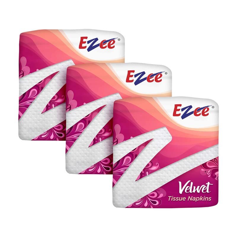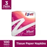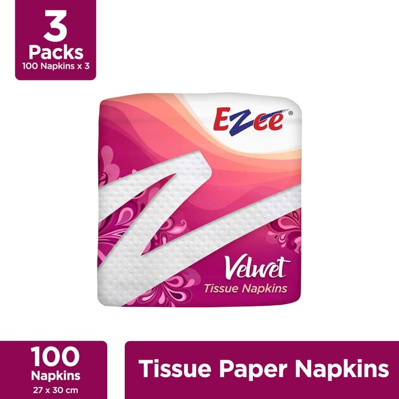 Ezee Velvet Tissue Paper Napkins 300 Pulls | Soft & Absorbent | Pack of 3 x 100 Pulls Each Pack