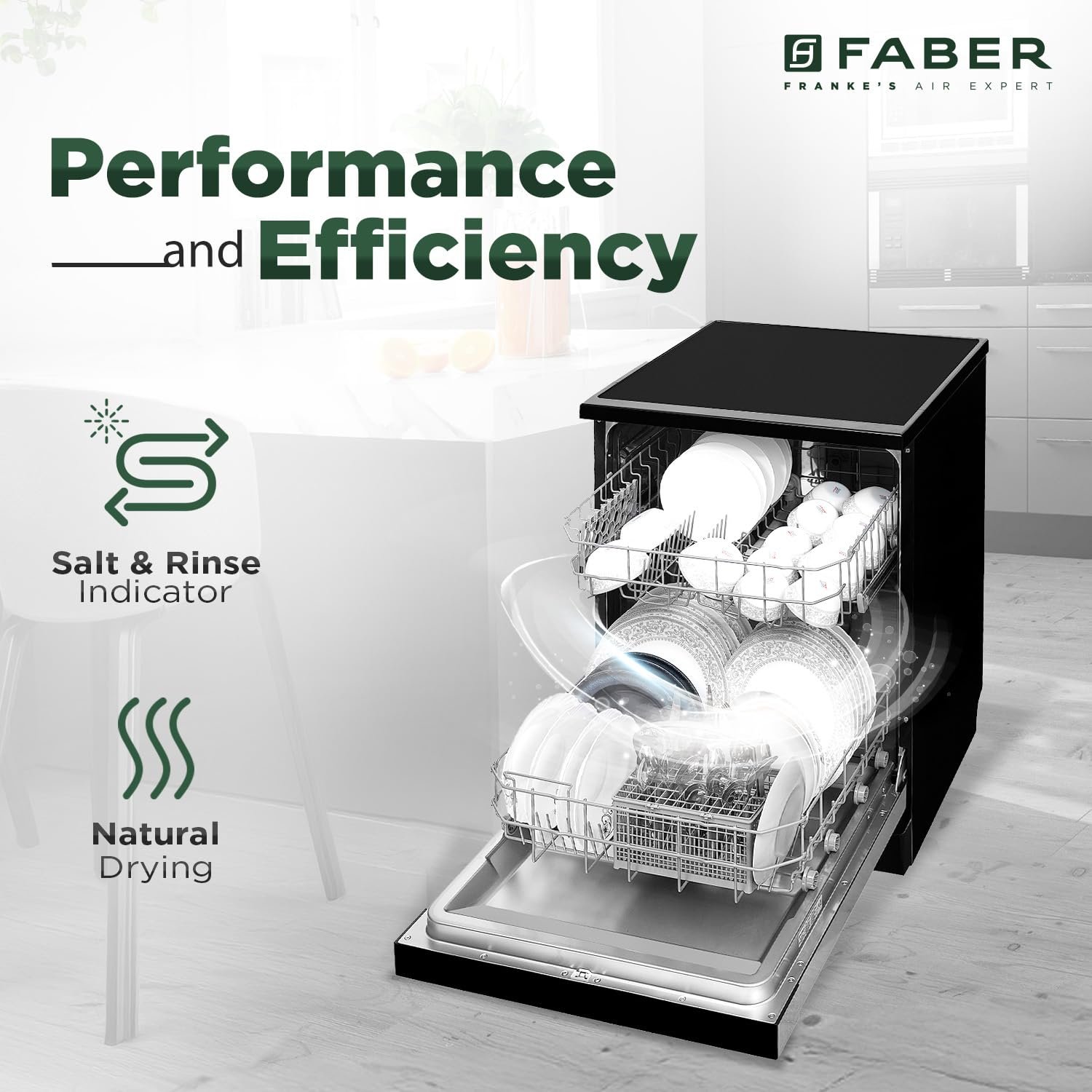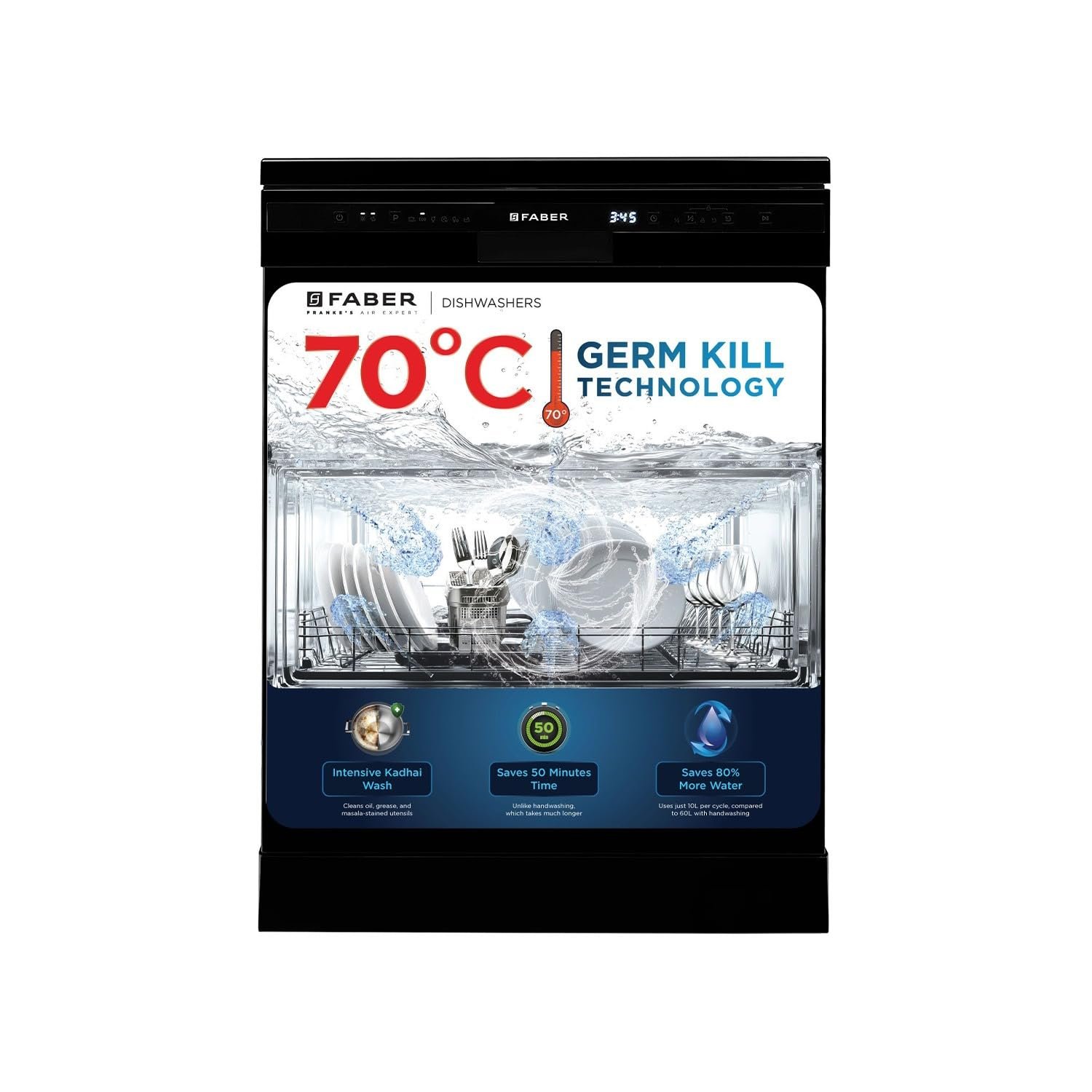 Faber 12 Place Settings Dishwasher (FFSD 6PR 12S, Neo Black, Best Suited for Indian Kitchen, Hygiene Wash)