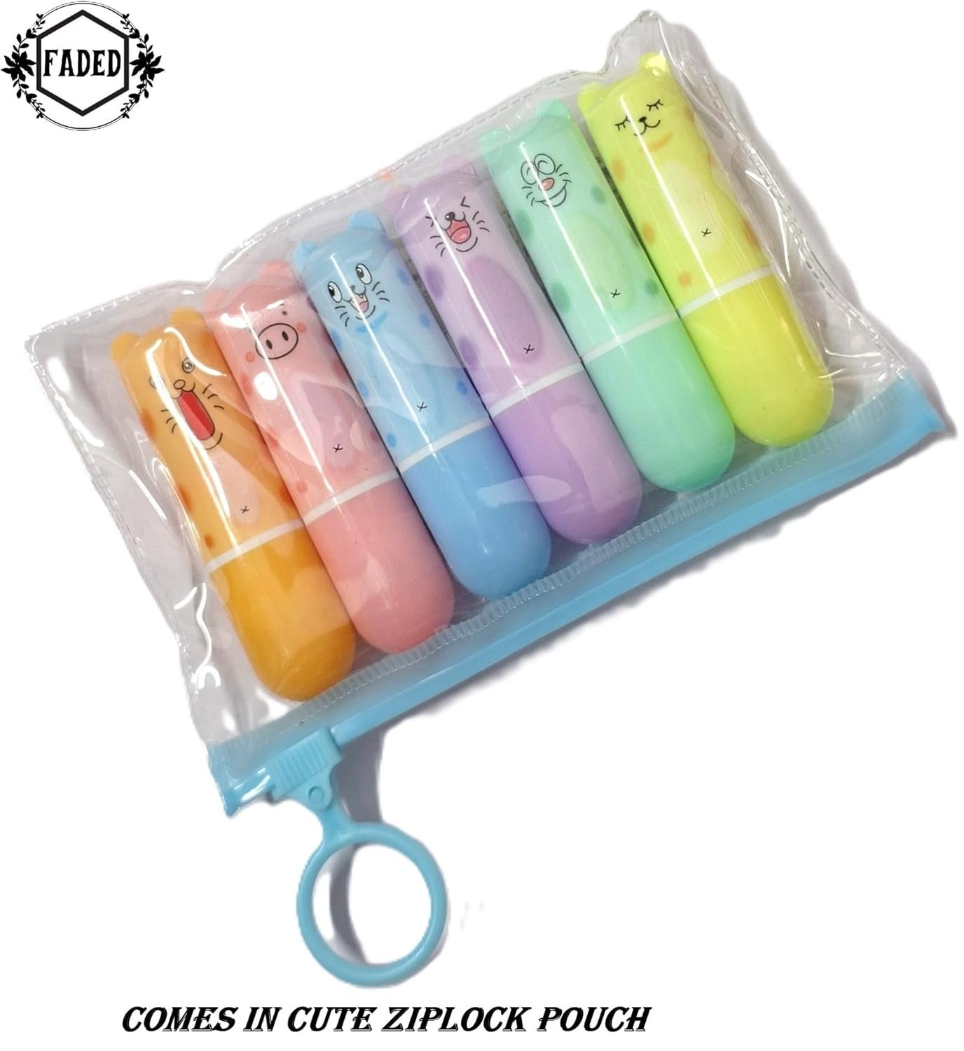 Faded 6 Pcs Mini Highlighter Cute Shaped Pens for School Office Supplies Writing Stationery (Animal Print Capsule)