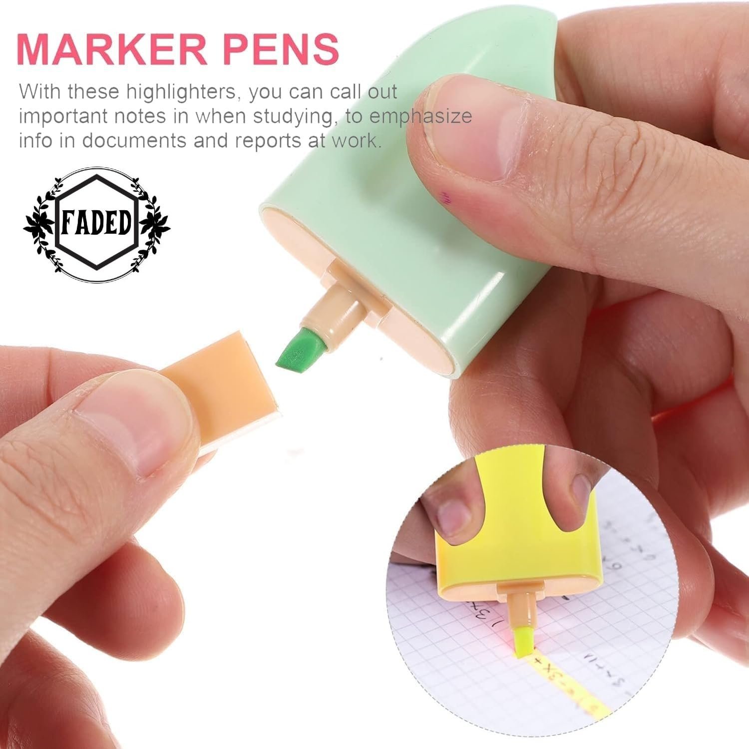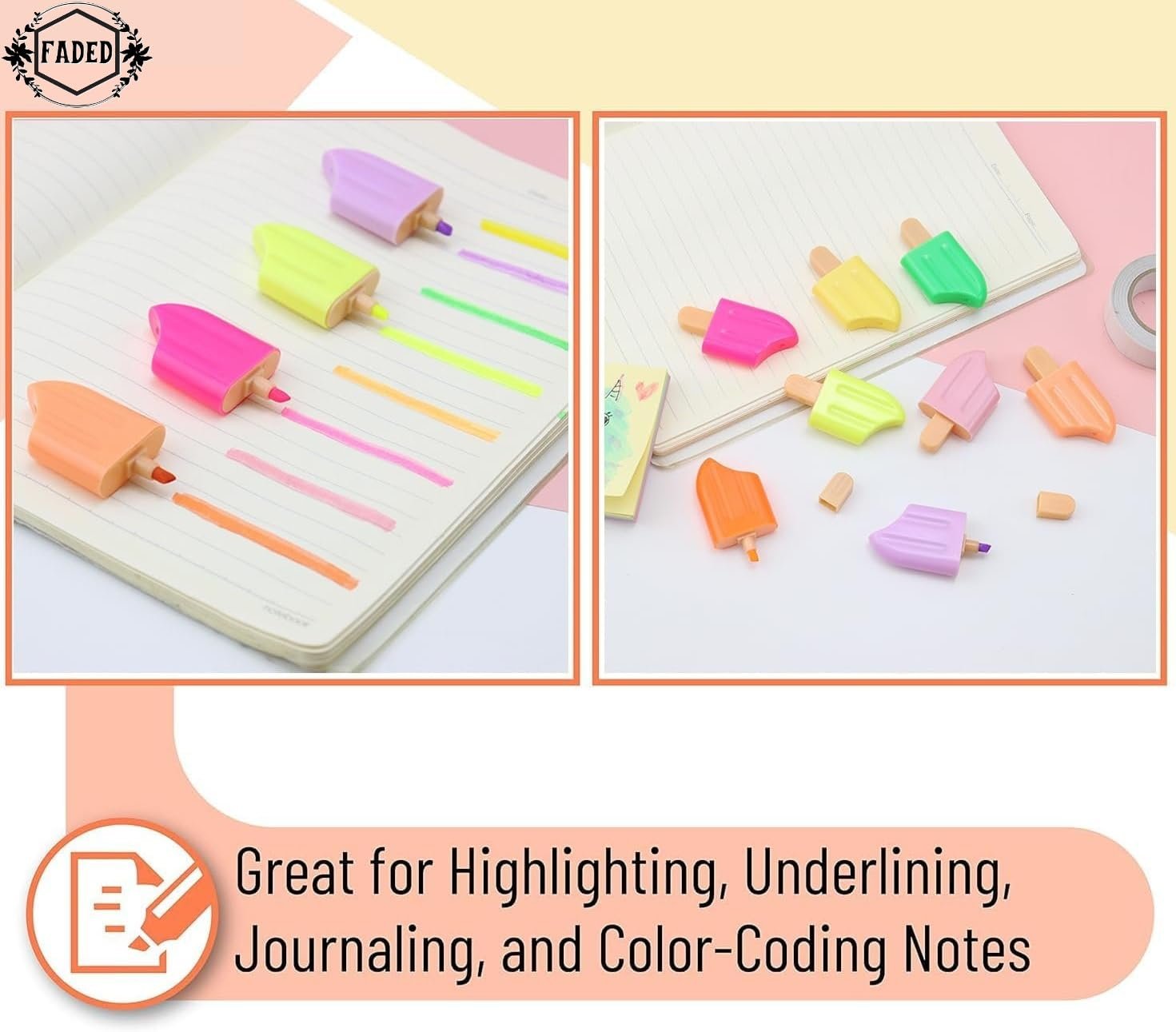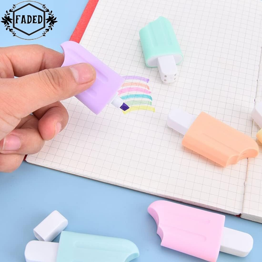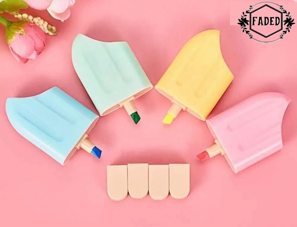Faded 6 Pcs Mini Highlighter Cute Shaped Pens for School Office Supplies Writing Stationery (Ice Candy)