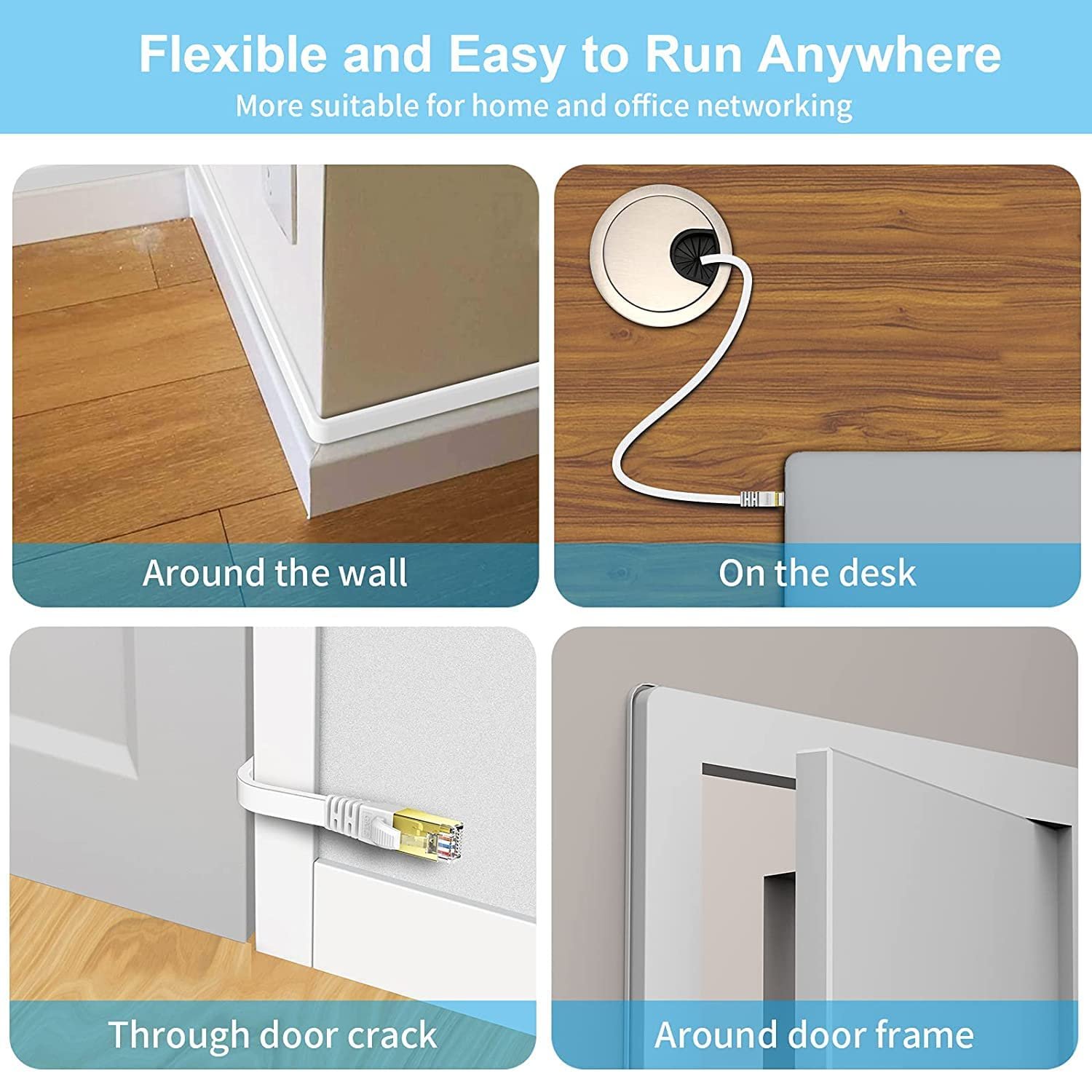 FEDUS 1M Cat6 Ethernet Cable,Flat RJ45 LAN Cable Wire High Speed 250MHZ/1 Gigabit Speed UTP LAN Cable,Network Internet Cable,Patch Computer Cord Gigabit Category 6 Wires For Modem,White