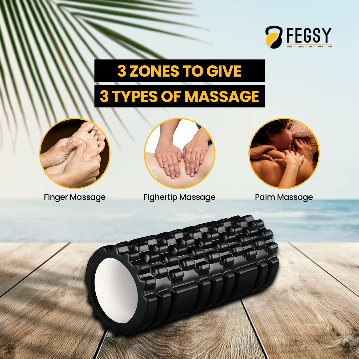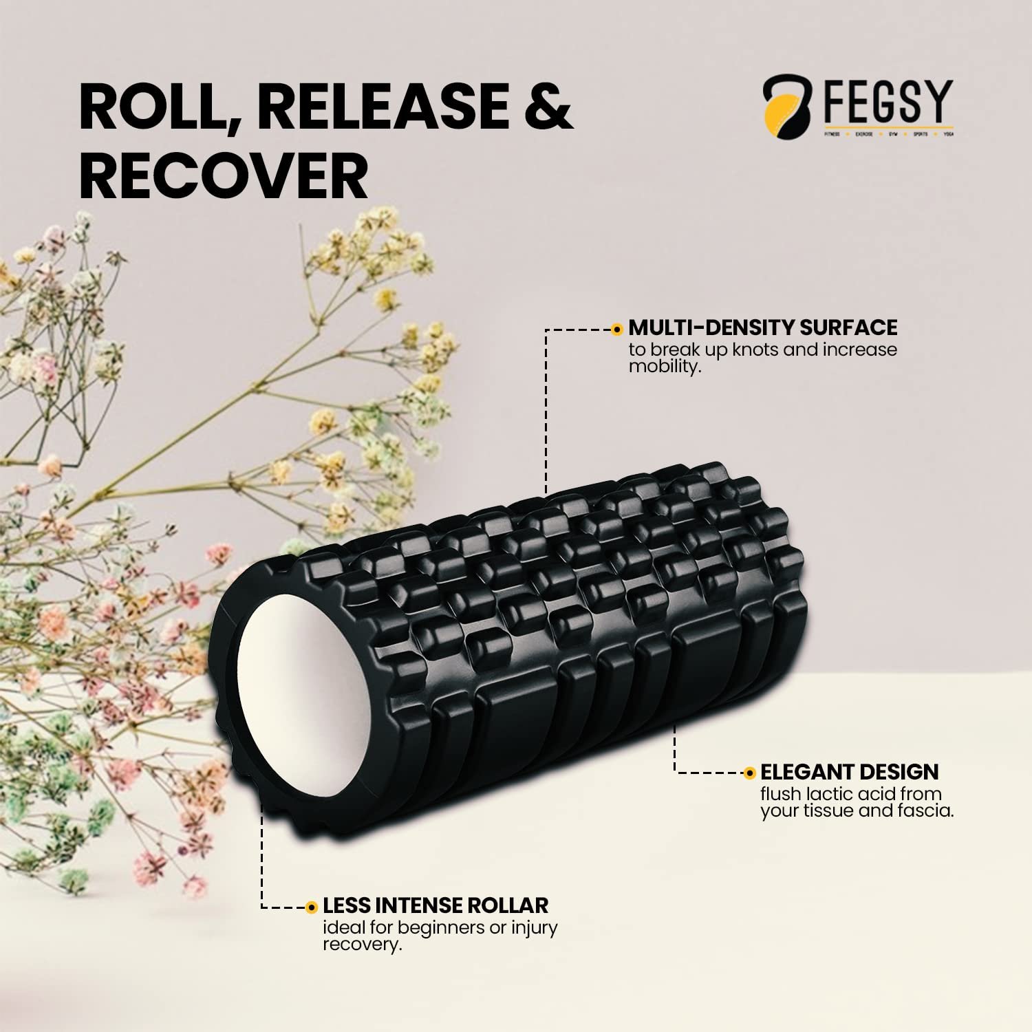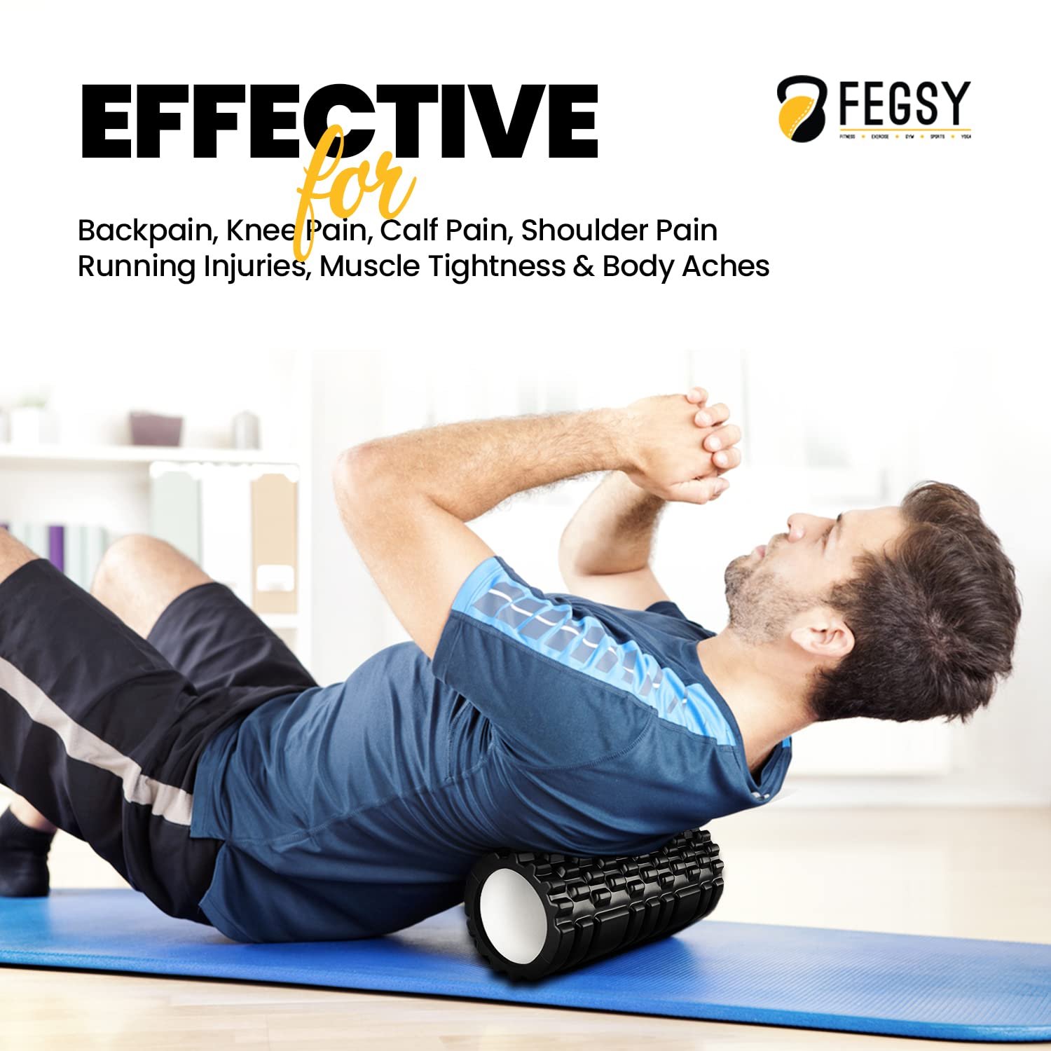FEGSY Foam Roller for Exercise, Fitness, Back Pain, Deep Tissue Massage, and Physiotherapy (Black)