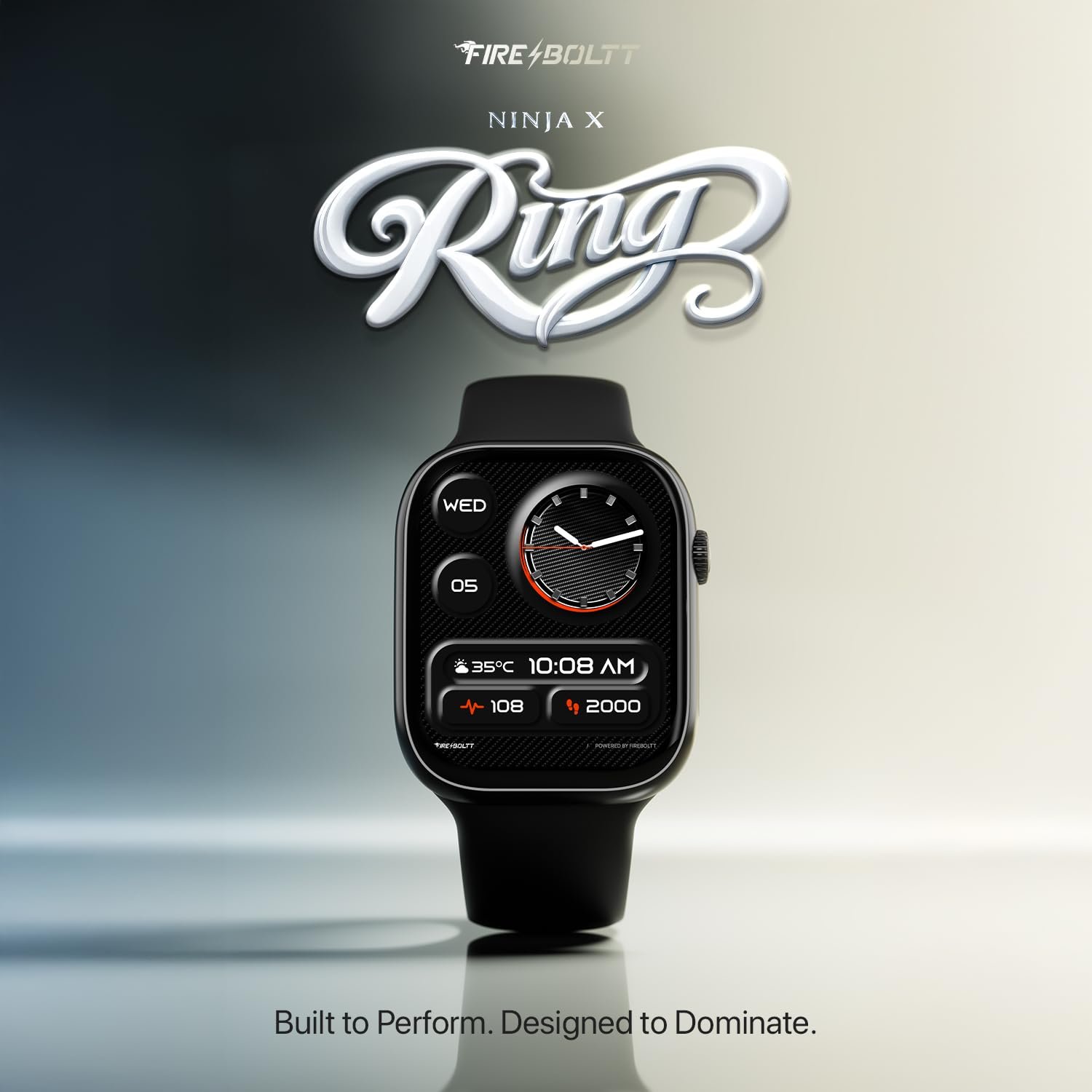 Fire-Boltt Ninja X Ring Smart Watch with 1.96” Large Display, Bluetooth Calling, Wireless Charging, AI Voice Assistant, 500+ Watch Faces, Health Suite, Smart Watch for Man & Woman – Black S