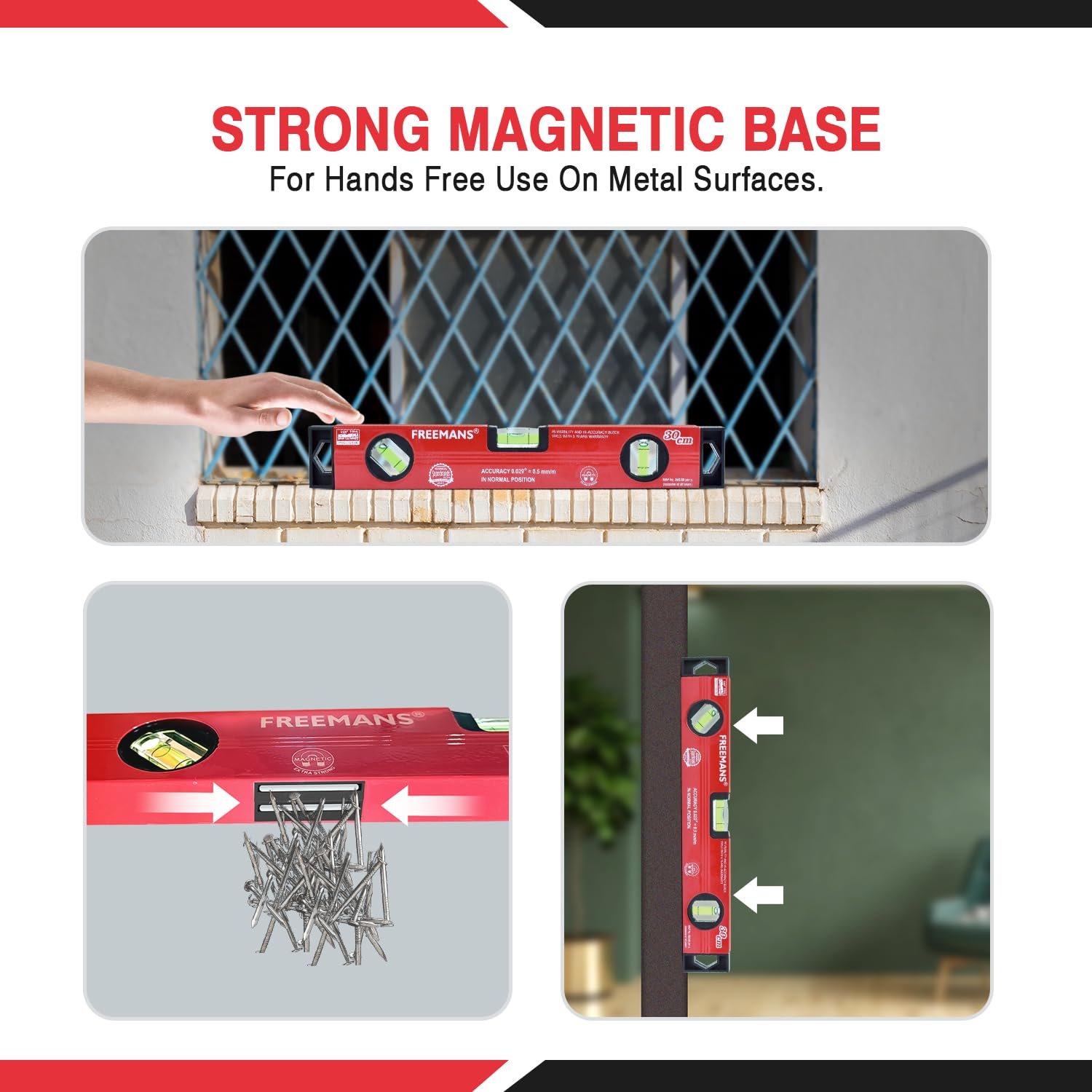 FREEMANS Box Section Aluminum Spirit Level with Magnet 30cm