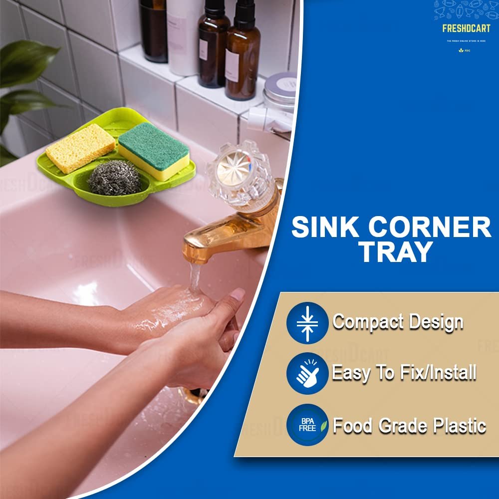 FreshDcart Kitchen Soap Stand for Sink with Tray – Compact Plastic Kitchen Soap Stand for Sink, Corner Storage Rack for Sponge, Scrubber & Dish Soap (Green, Pack of 1)