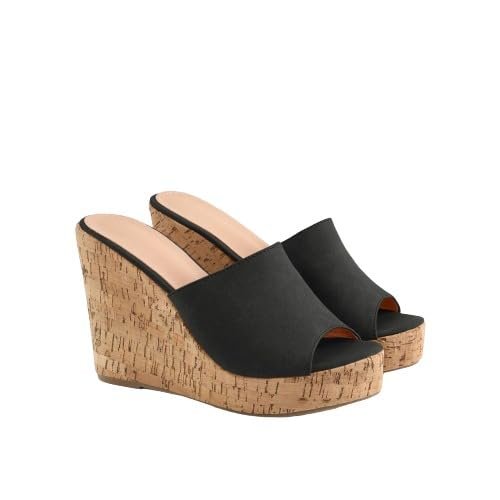 GLO GLAMP Women’s Fashion Espadrille Wedge Platform Light Arch Support Non-Slip Sandals (Black, 5)