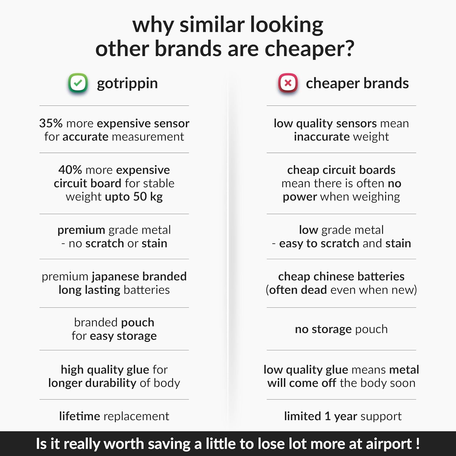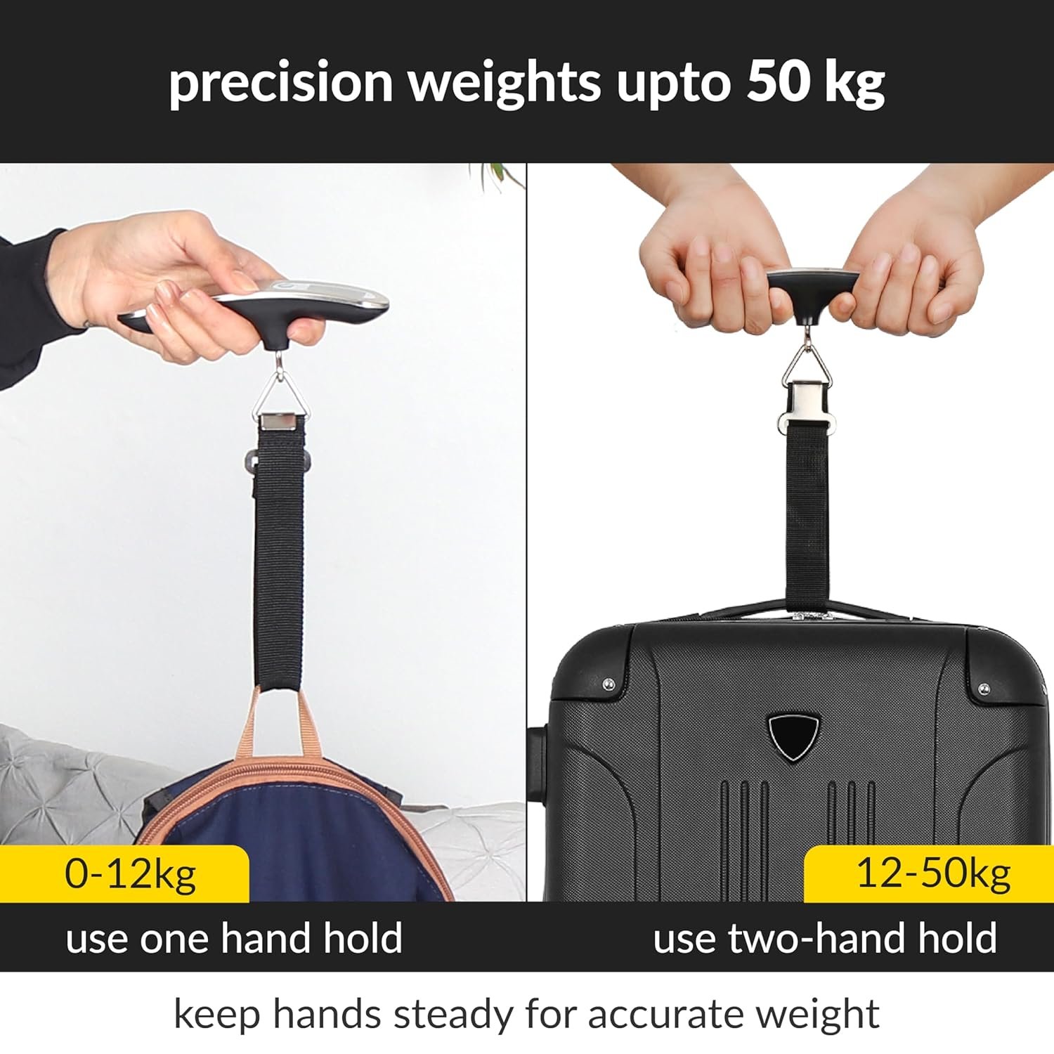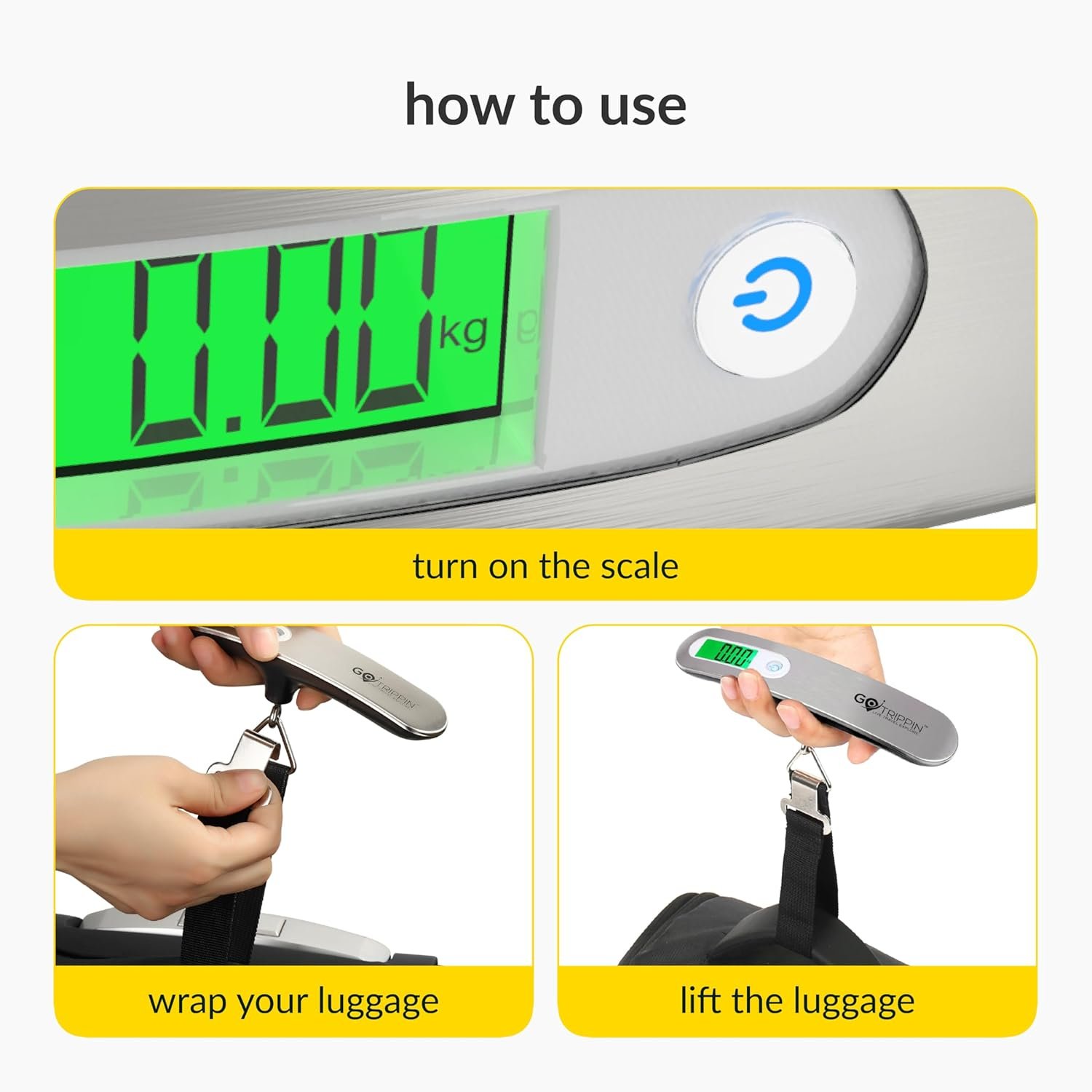 GoTrippin by Destinio Weight Machine for Luggage – 50 kg capacity, Steel body, Lifetime replacement – Digital Portable Electronic Luggage Weighing Scale for home, travel, flights, bags (Silver, 50 kg)