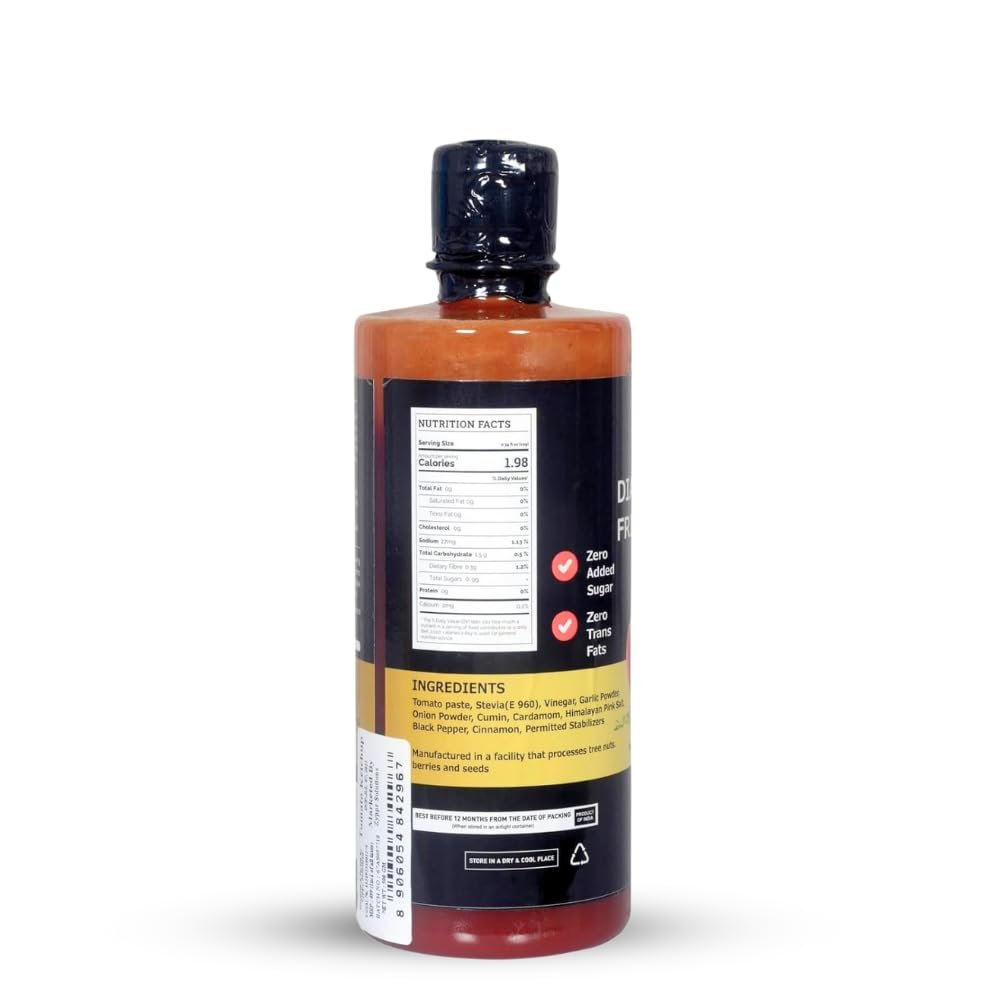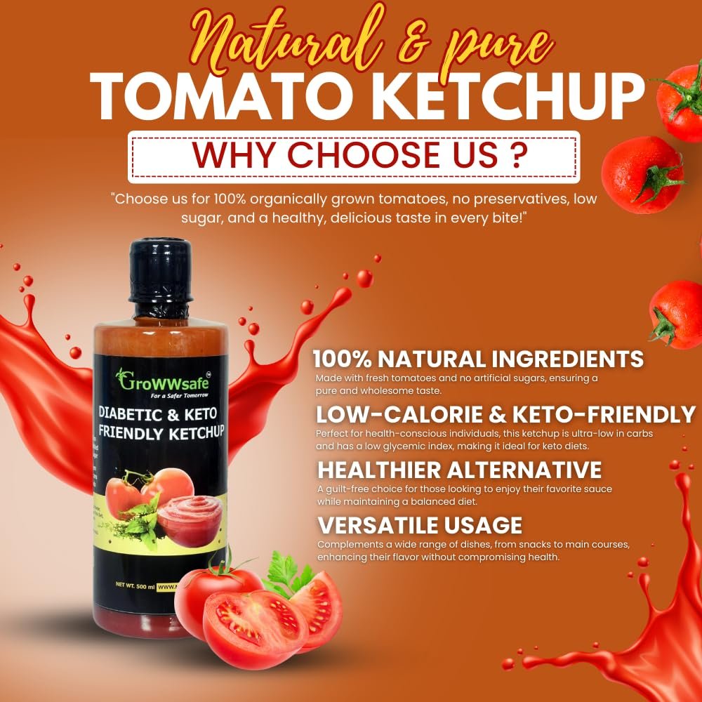 Growwsafe Tomato Ketchup (500GM)|No Afrificial Sugar | Low Calorie | No Artificial Colors & Flavours |Tangy & Sweet Healthy Sauce | Ultra Low-Carb & Ultra Low-Gi|Tomato Sauce | Keto Friendly