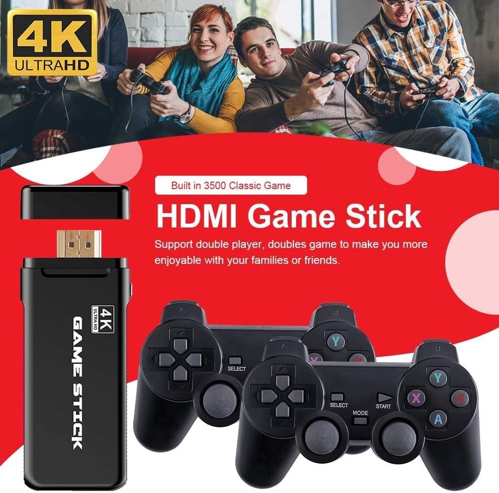 GSH USB Wireless Console Game Stick Video Game Console Built-in 3000 Classic Games 8 Bit Mini Retro Controller HDMI Output Dual Player- 4K Ultra HD Game Stick, Black