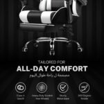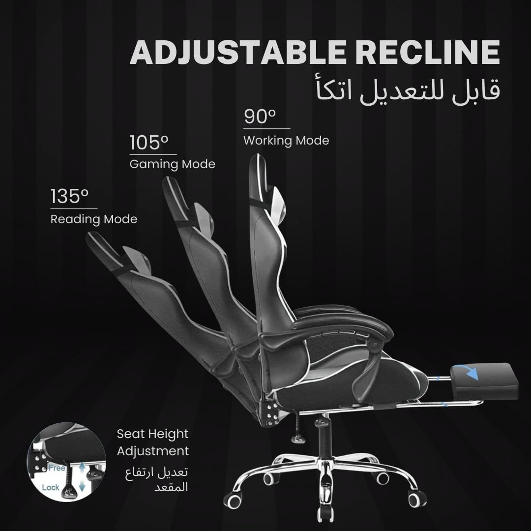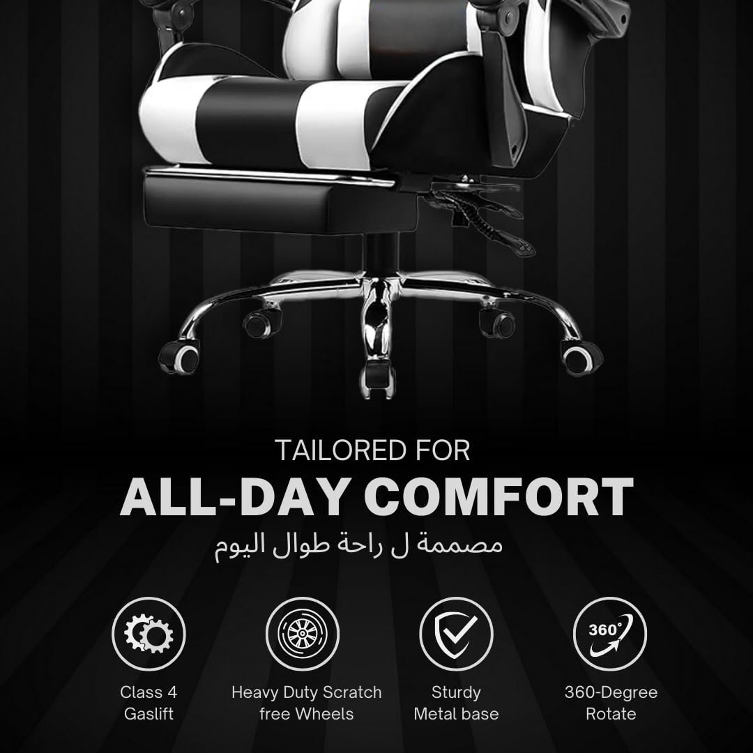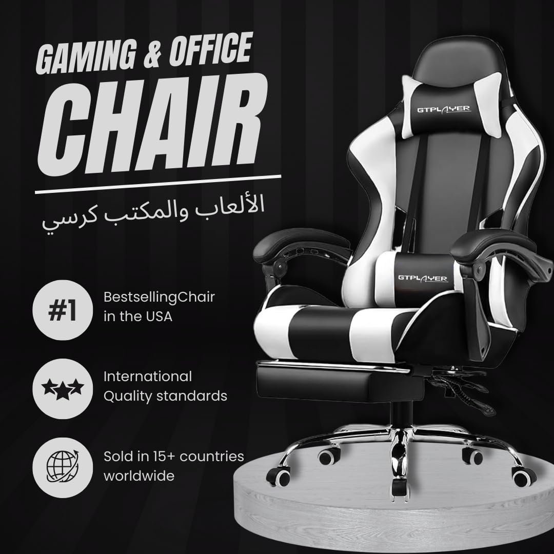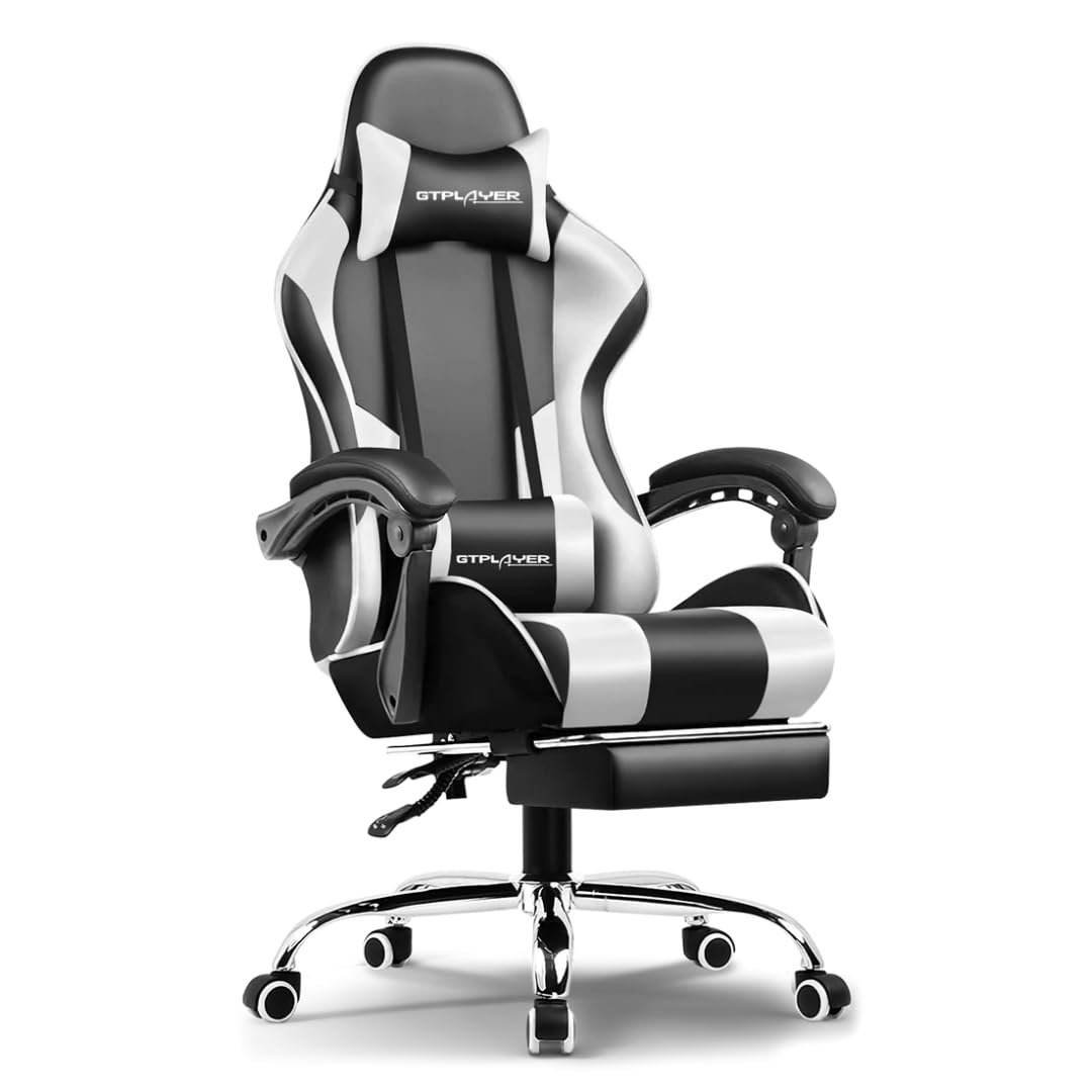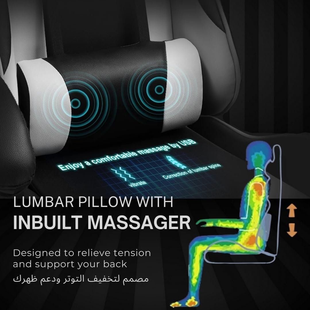 GTPLAYER #1USA Multi-Functional Ergonomic Gaming & Computer Chair – Massage Cushion, Premium PU Leather, Adjustable Neck & Lumbar Pillow for Back Support, Footrest (White)