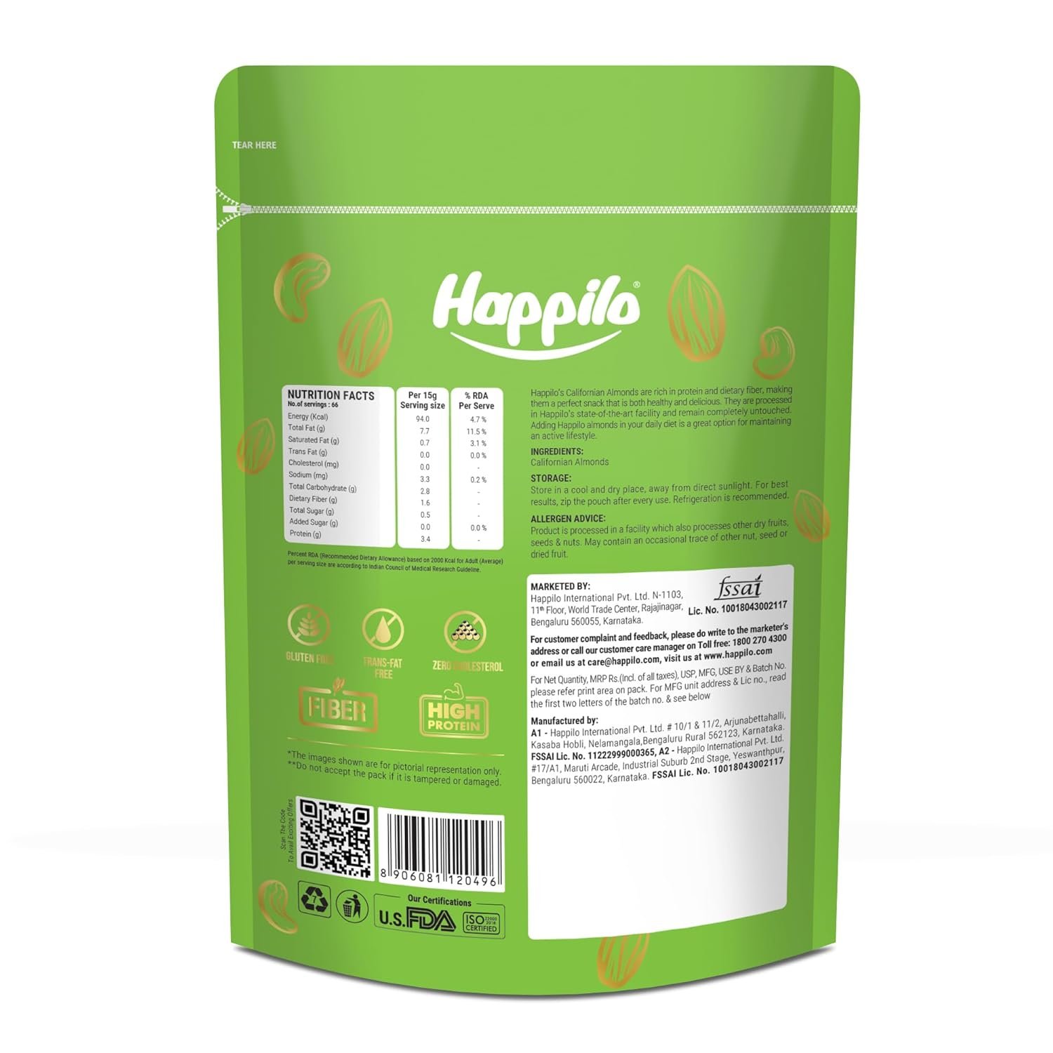 Happilo Premium Natural Californian Almonds 1 Kg | Badam Giri, Healthy Snacks, Dry Fruits | Crunchy Nuts | High in Fiber | Rich in Protein | Magnesium | Phosphorus | Dietary Fibre | Zero Cholesterol