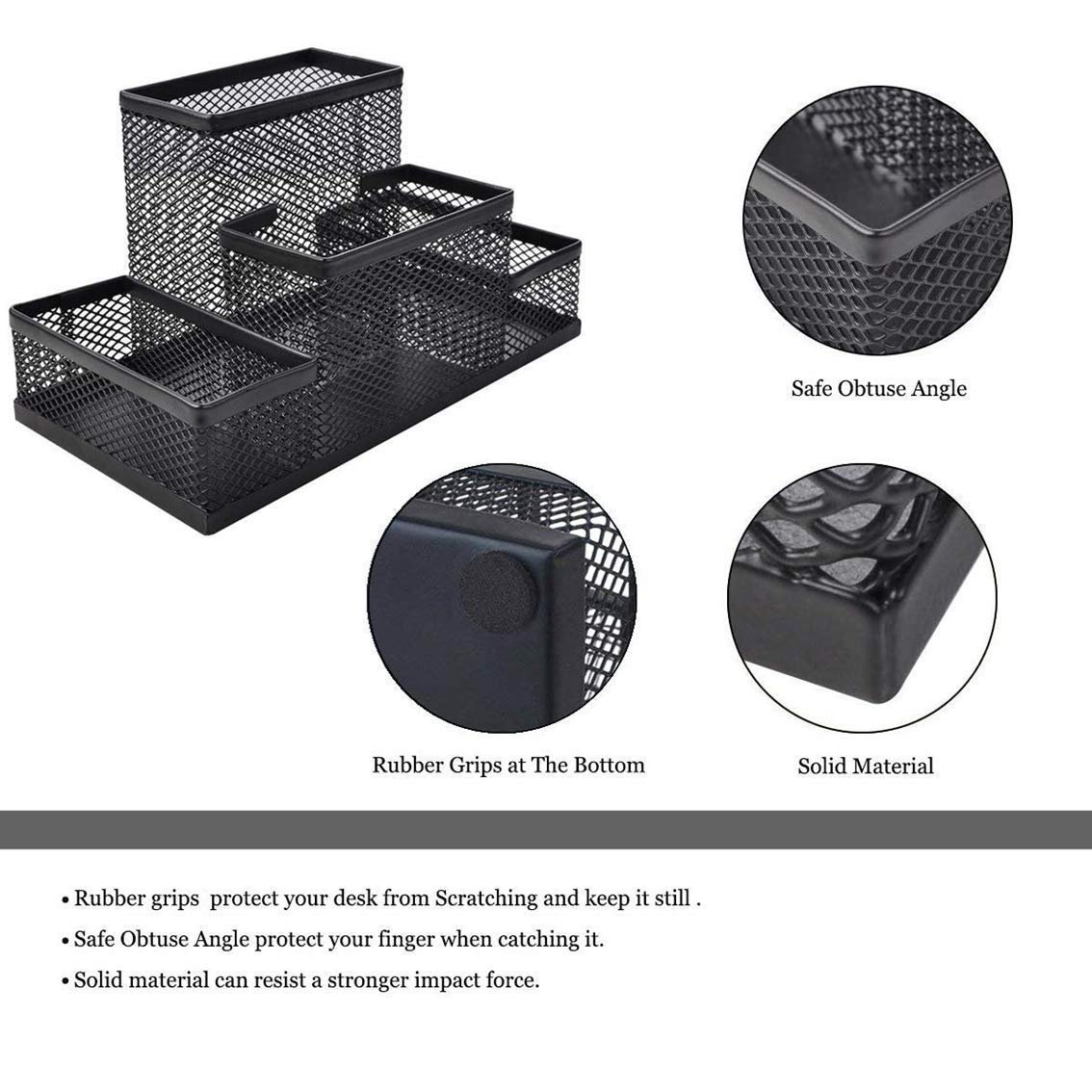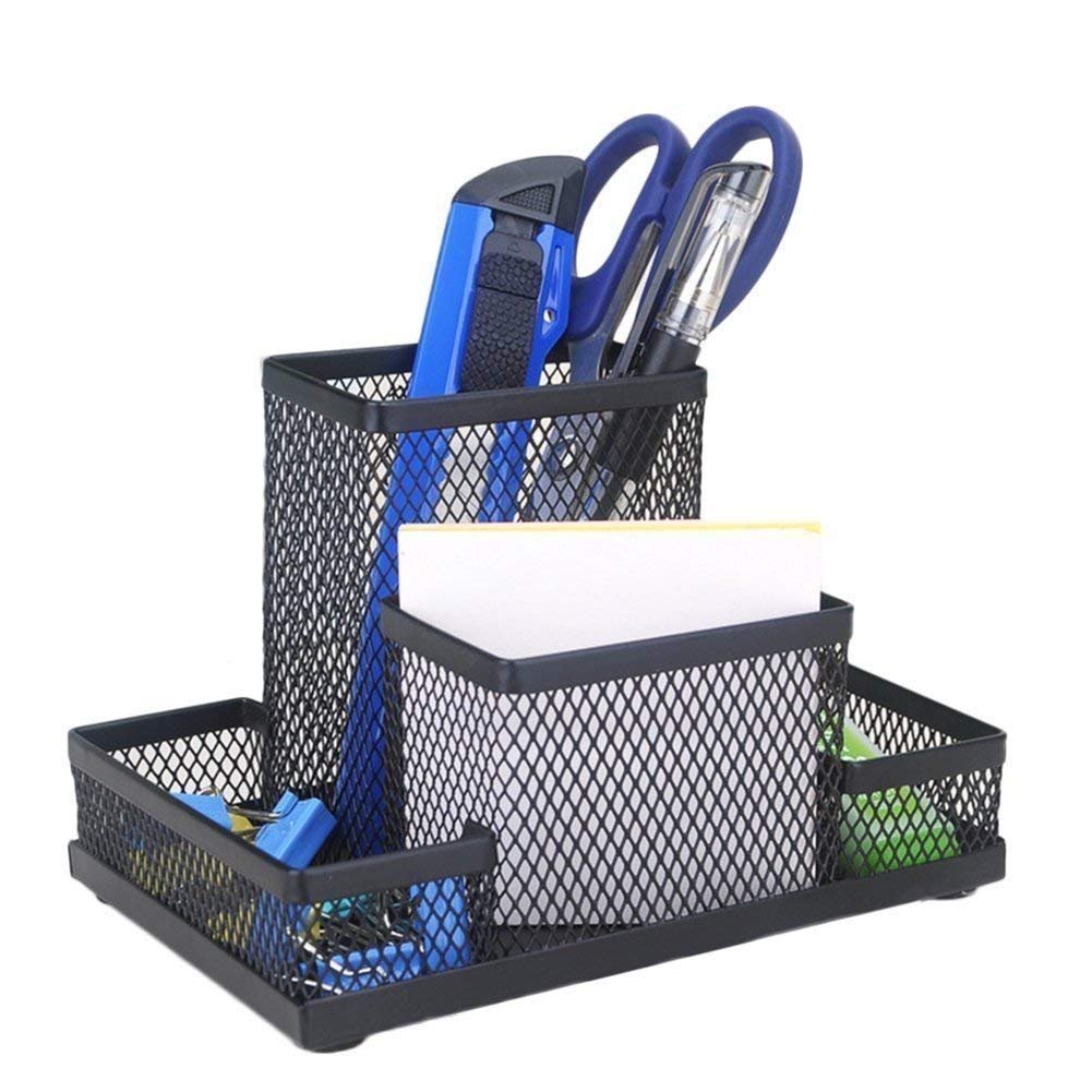 Heria Metal Mesh 4 Compartments Office Desktop Supplies Pen/Pencil Stand, Clip Holder, Tidy Desk Organizer for Home // Pen Stand Pencil Accessories Holder Container Desk Organizer Stationery(Black)