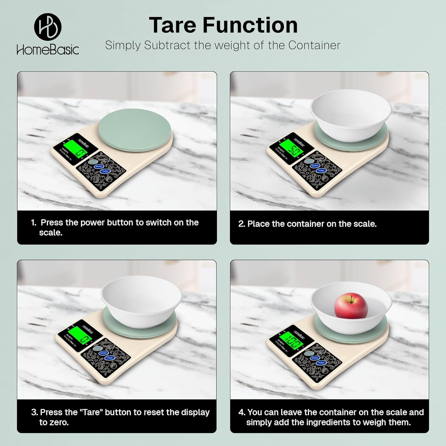HOMEBASIC Digital Kitchen Weighing Scale 10Kg: High-Precision 1g Accuracy | Tare Function, LCD Display, Multi-Unit (g, oz) Portable Weight Machine Food Scale for Cooking Baking Diet (Beige+GRN)
