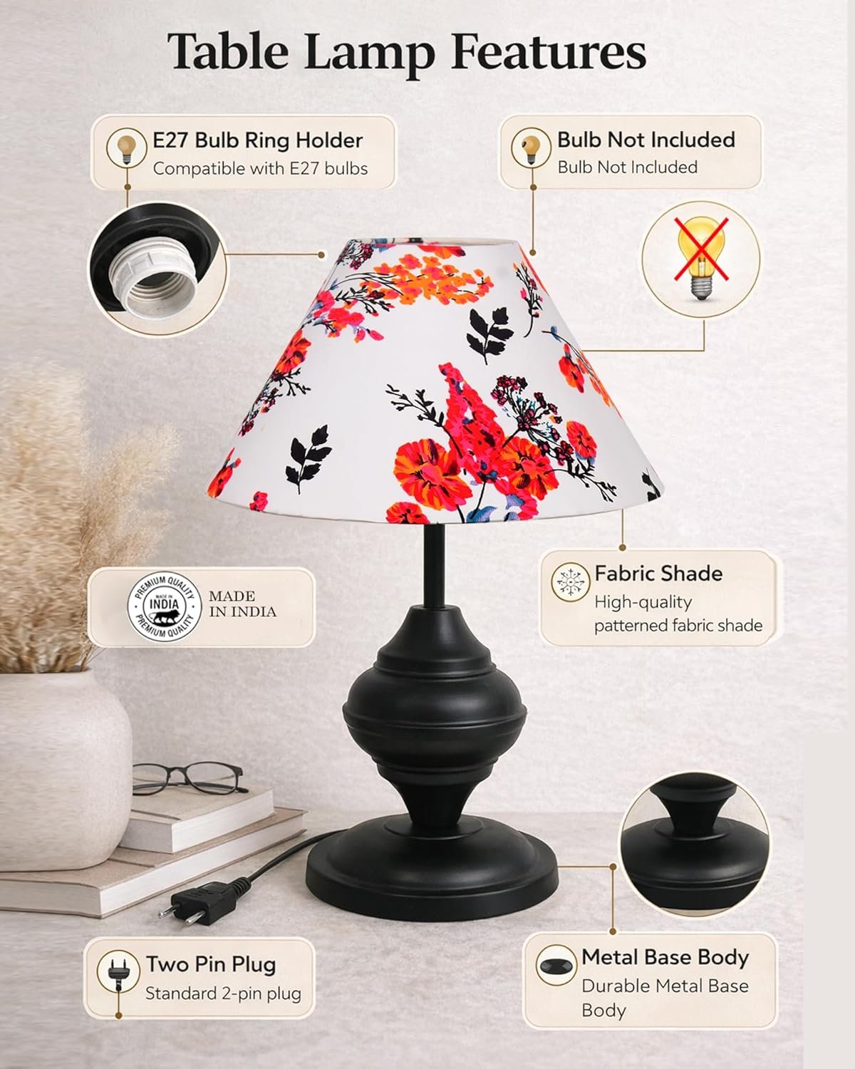 Homesake® Black Metal Table Lamp | for Living Room | Modern Bedside Light with Shade | Decorative Night Lamp for Bedroom, Study, Office | Home Decor Lighting, E27 Holder, Urn, (Cone Marigold)