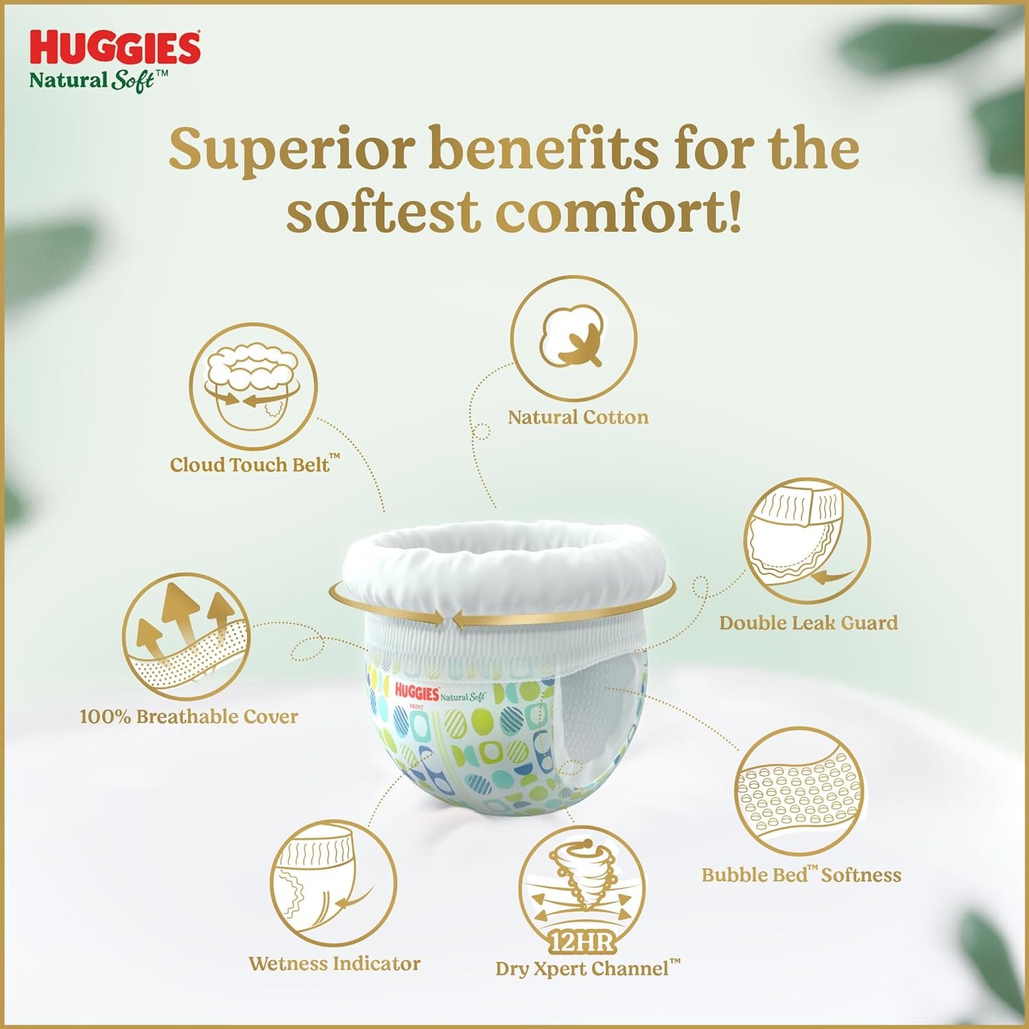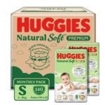 Huggies Natural Soft Premium Baby Diaper Pants, Our No.1 Soft Pants, Small (S) Size (4-8 Kgs), Monthly Pack of 140 diapers | Cloud Softness All over with India’s 1st Cloud Touch BeltTM