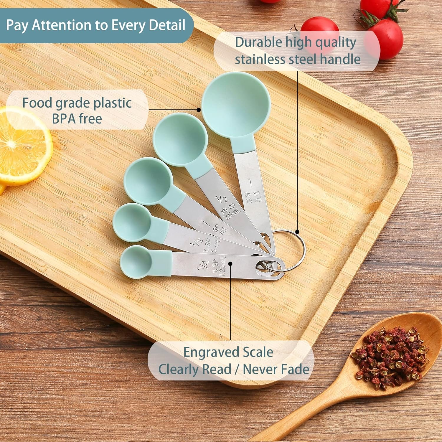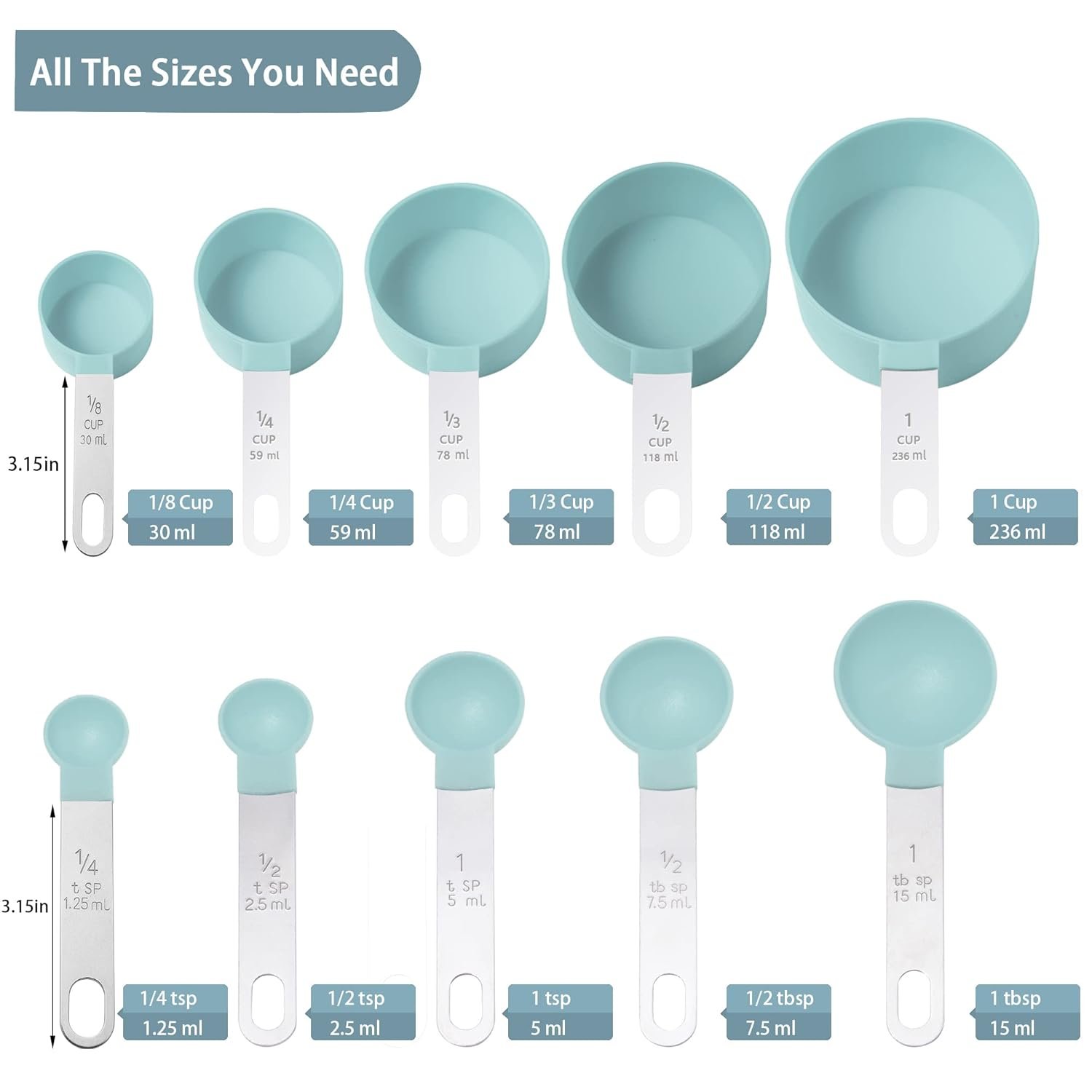 Huygens 8PCS Measuring Cups and Spoons Set,The Measuring Cups and Measuring Spoons with Stainless Steel Handle,Suitable for Solid and Liquid (Green)