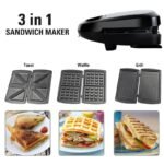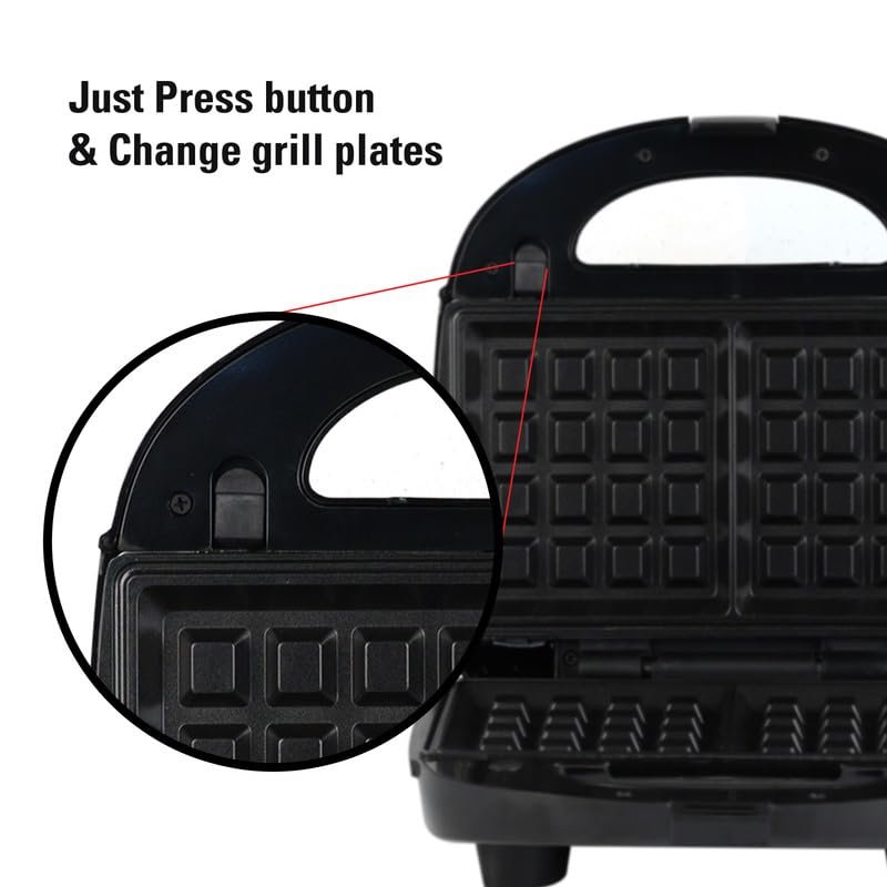 iBELL SM1301 3-in-1 Sandwich Maker, Big Size, 750 Watt, with Detachable Plates for Toast/Waffle/Grill (24 x 24 x 10 cm)