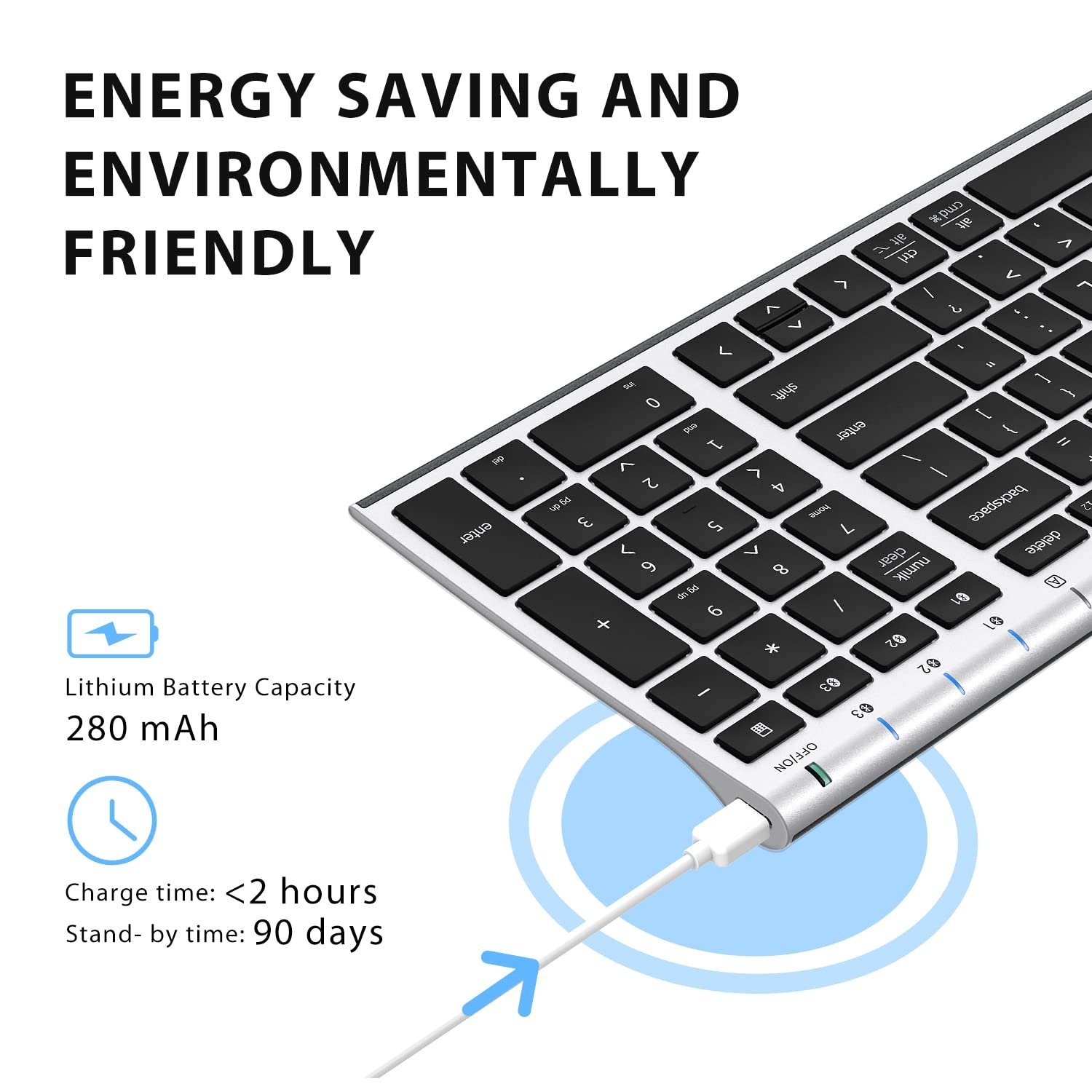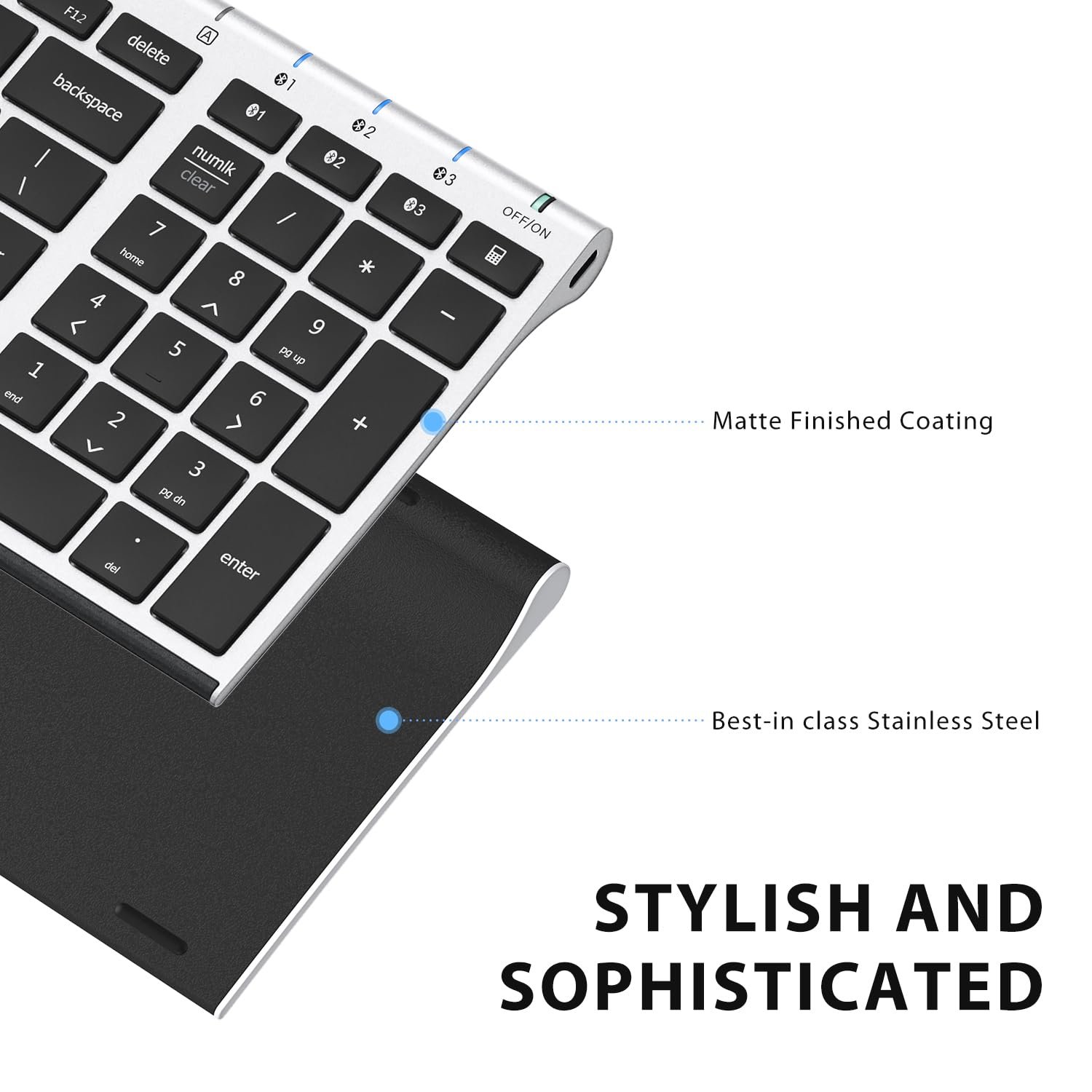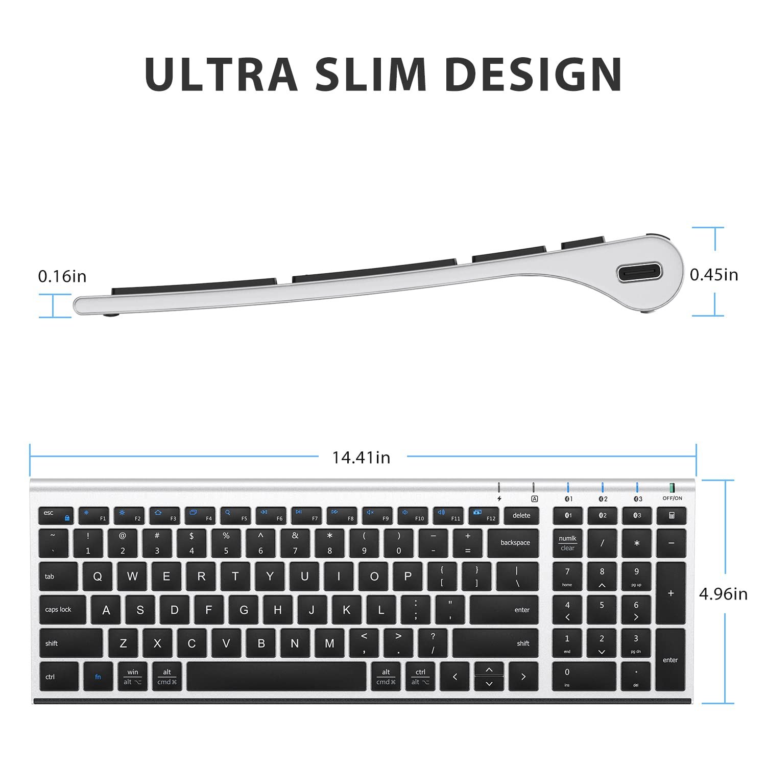 iClever BK10 Multi-Device Bluetooth Keyboard – Windows, Mac, Chrome OS, Android, iPad, iPhone, Apple TV Compatible –Rechargeable Wireless Keyboard Easy-Switch up to 3 Devices – Silver Black