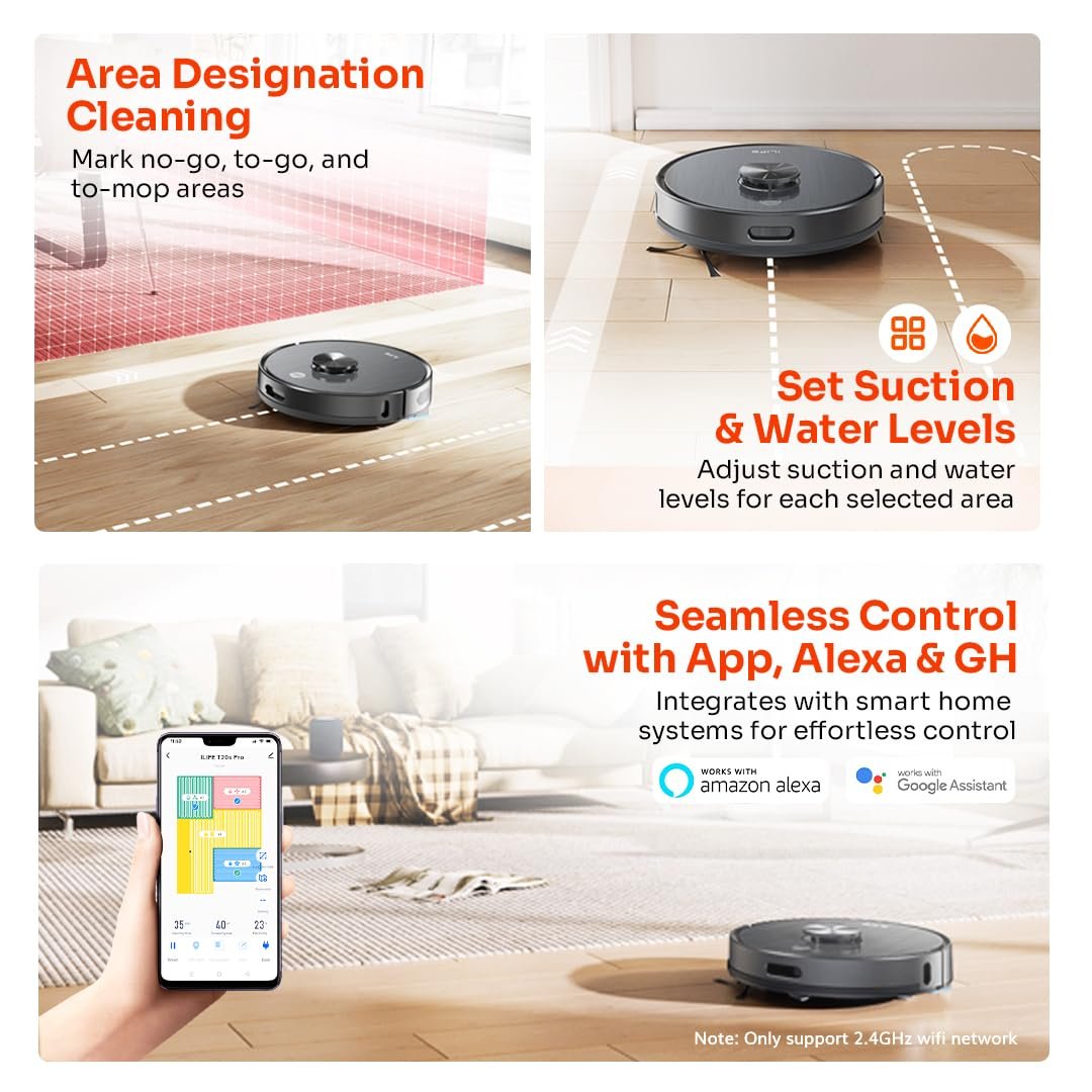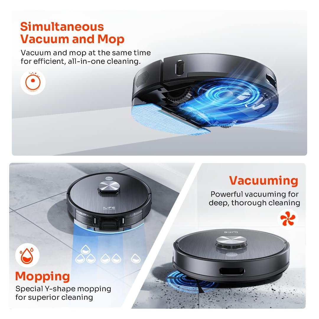 ILIFE T20s Pro Robot Vacuum Cleaner with Advanced LiDAR Navigation, Self-Emptying for Up to 10 Weeks, 6500Pa Suction, Simultaneous Vac and Mop, Multi Floor Maps, Customized Cleaning, App, Alexa & GH
