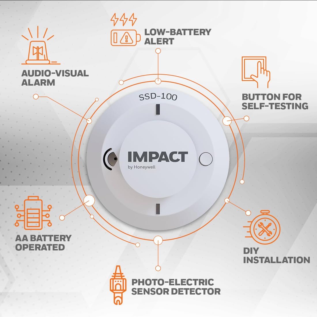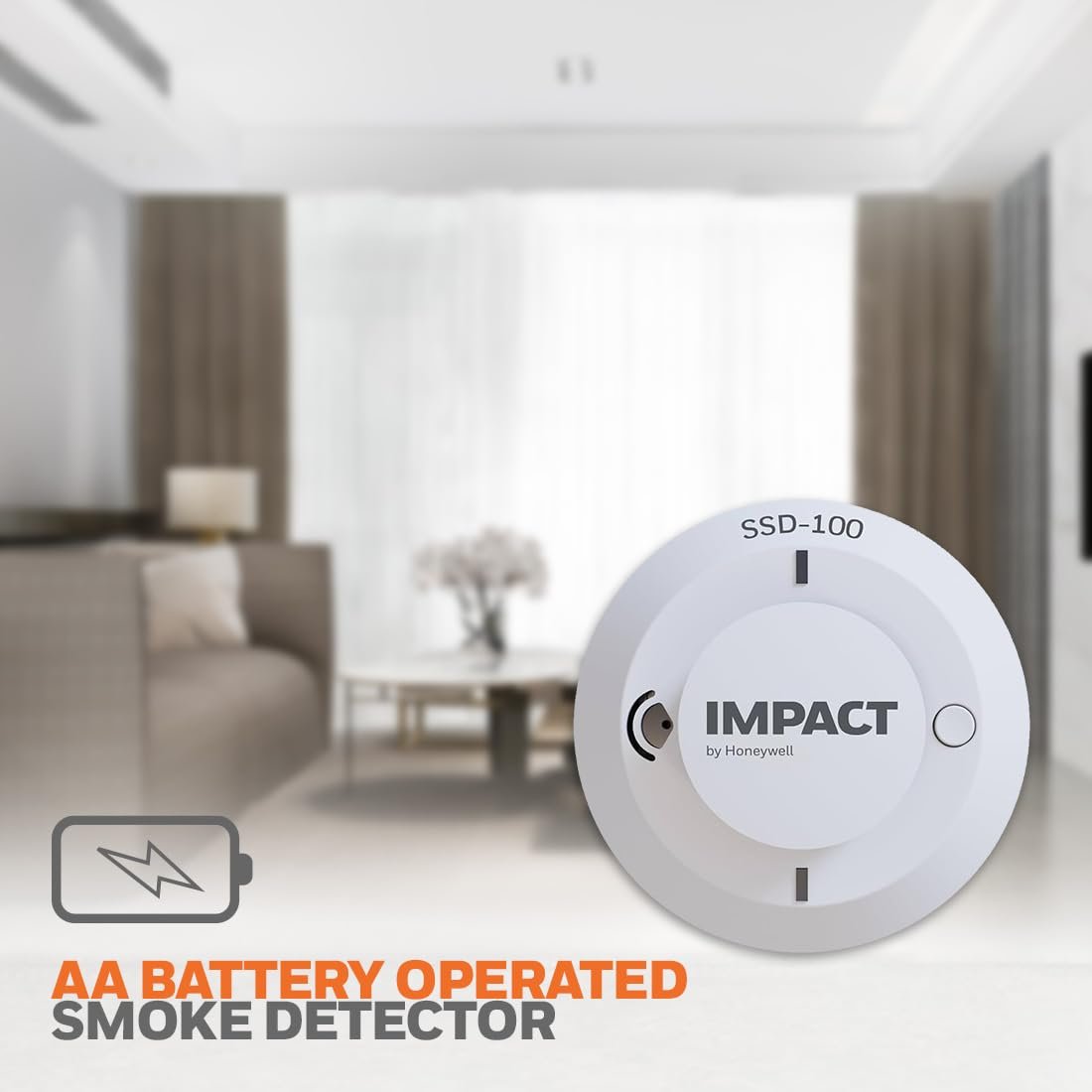 IMPACT by Honeywell Battery Operated Standalone Smoke Detector I DIY Plug and Play I Instant Audio Alerts I High-Performance Sensor I White (SSD-100)