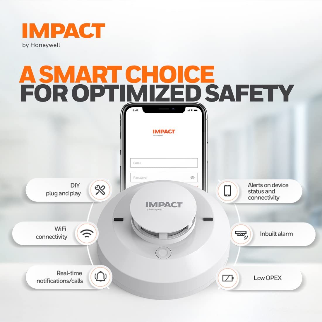 IMPACT by Honeywell WiFi Connected Smart Smoke Detector I Mobile App ControlledI Battery Operated IApp Notification & Incoming CallsI Device Status at Regular IntervalsI Make in India(FDC-100/FDC-101)
