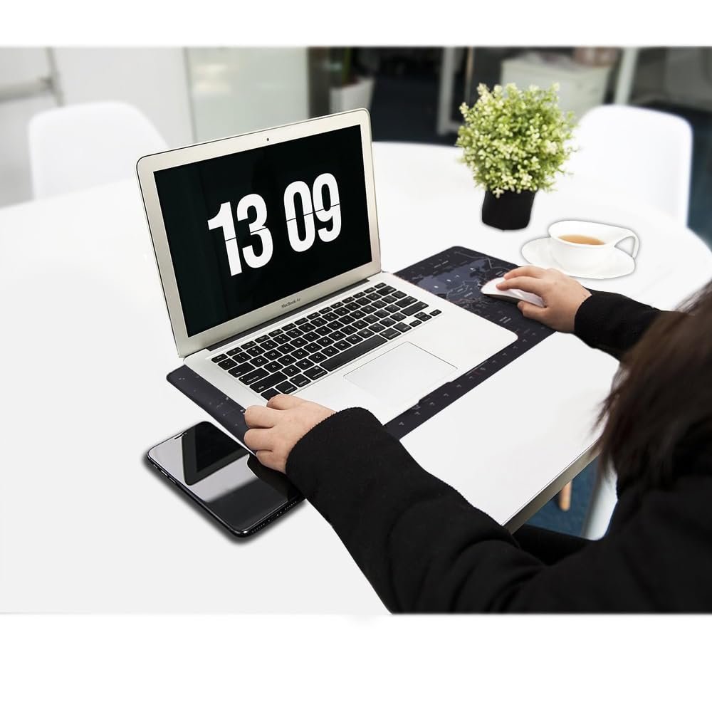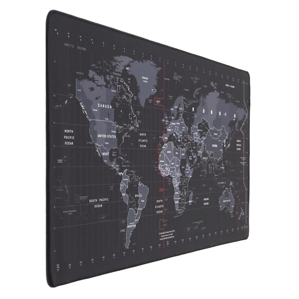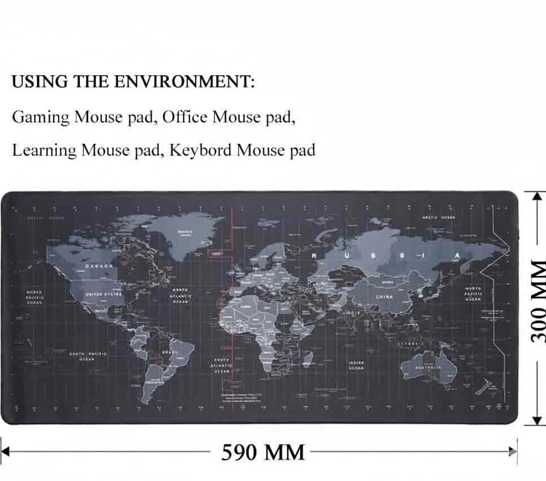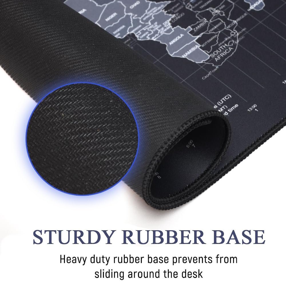 The detailed world map design on a sleek black background adds a sophisticated and educational touch to your desk. Whether you’re gaming, working, or studying, this mat enhances precision and comfort, making it an essential part of your setup.