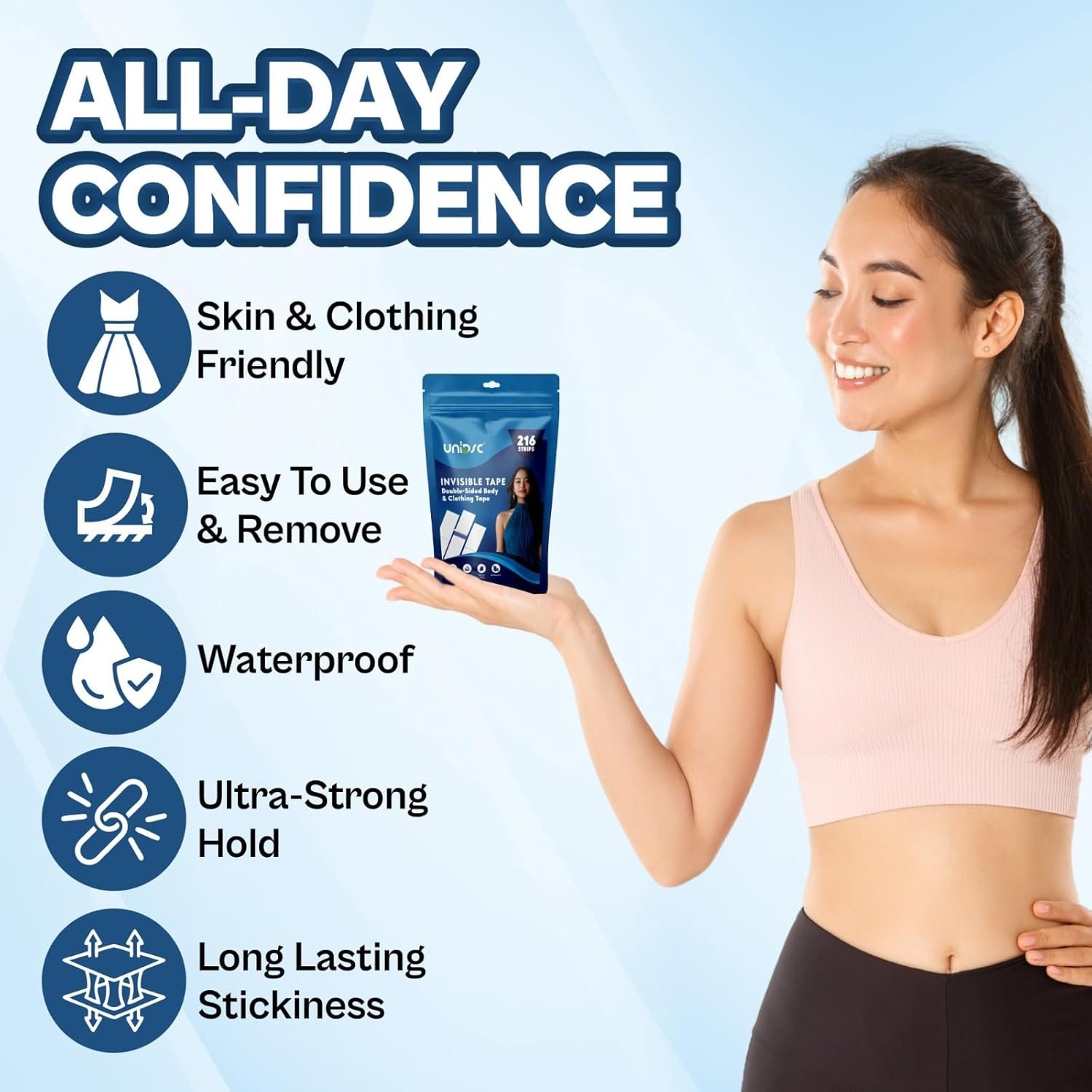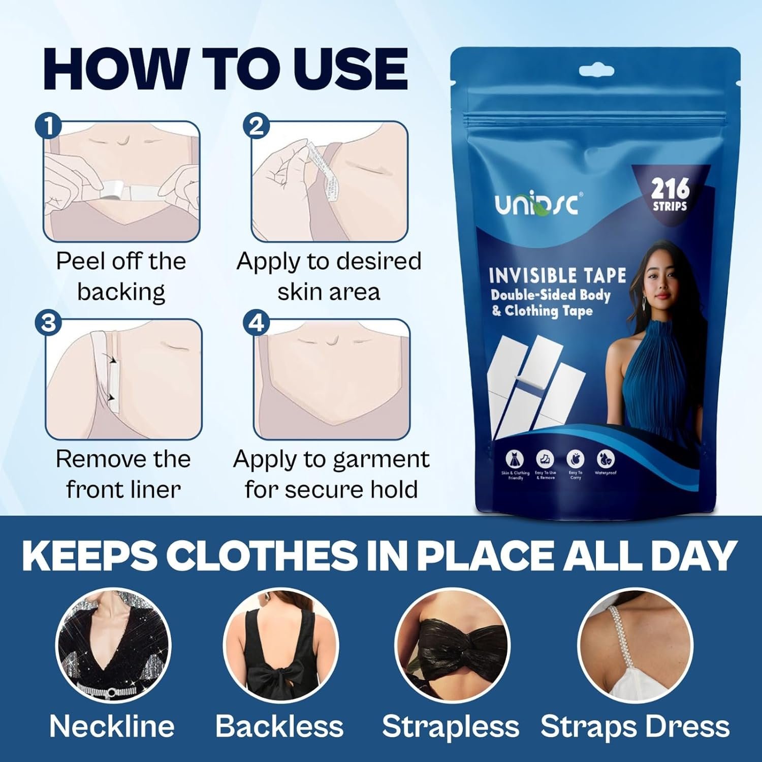 Invisible Double-Sided Lingerie Tape for Women | Strong Body & Clothing Adhesive | Hypoallergenic Waterproof Fashion Strips | Secure Dress & Saree Fit