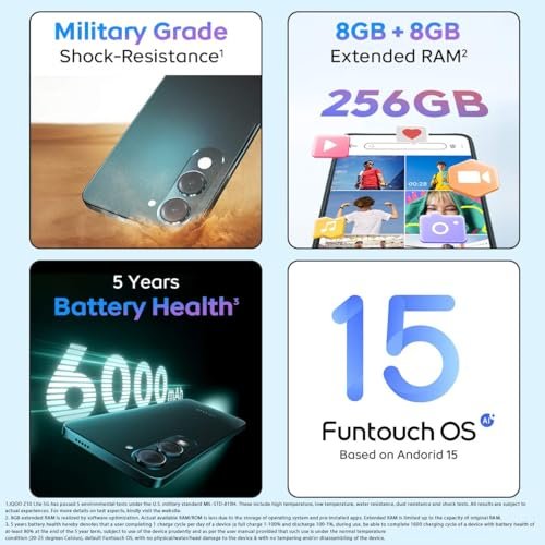 iQOO Z10 Lite 5G (Titanium Blue, 4GB RAM, 128GB Storage) | 6000 mAh Battery | Dimensity 6300 5G Processor with 433K+* AnTuTu Score | IP64 Rated & Military Grade Shock-Resistance