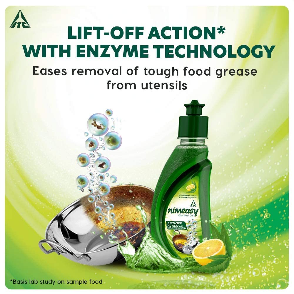 ITC Nimeasy Dishwash Liquid Gel, Kitchen Cleaner, Utensil Cleaner Liquid, Lift Off Action With Enzyme Technology, Removes Grease & Oil, Lemon Citrus Fragrance, From House Of Nimyle, 500 Ml
