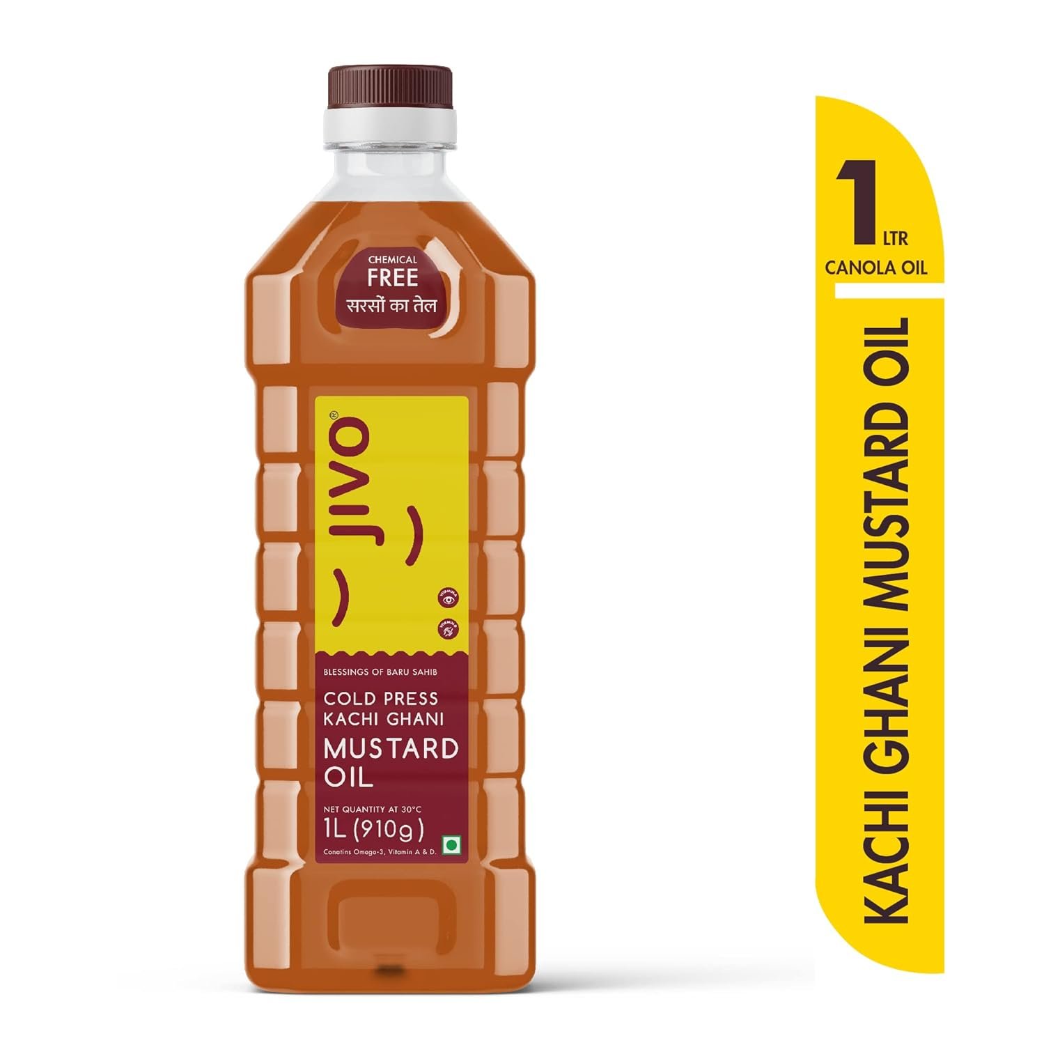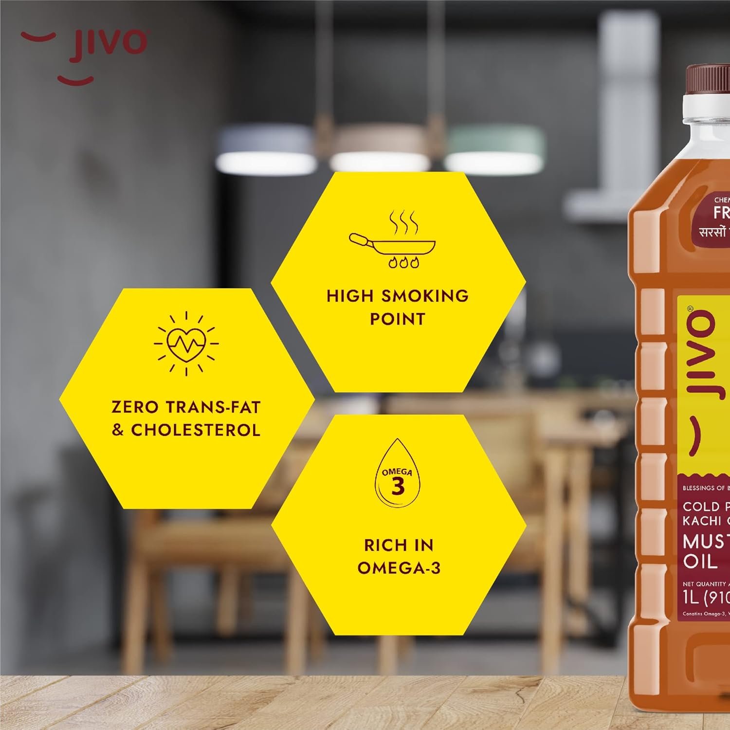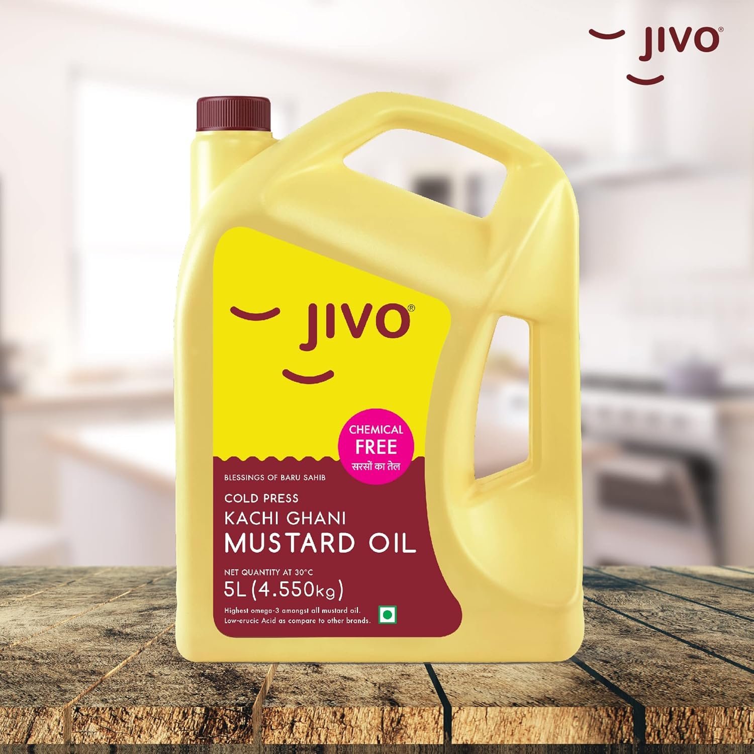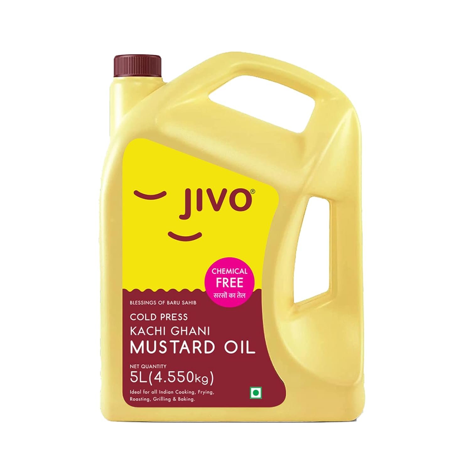 Jivo Premium Cold Pressed Kachi Ghani Pure Mustard Oil, 5 Litre &JIVO Kachi Ghani Chemical Free Mustard Daily Cooking Oil, 1 Liter