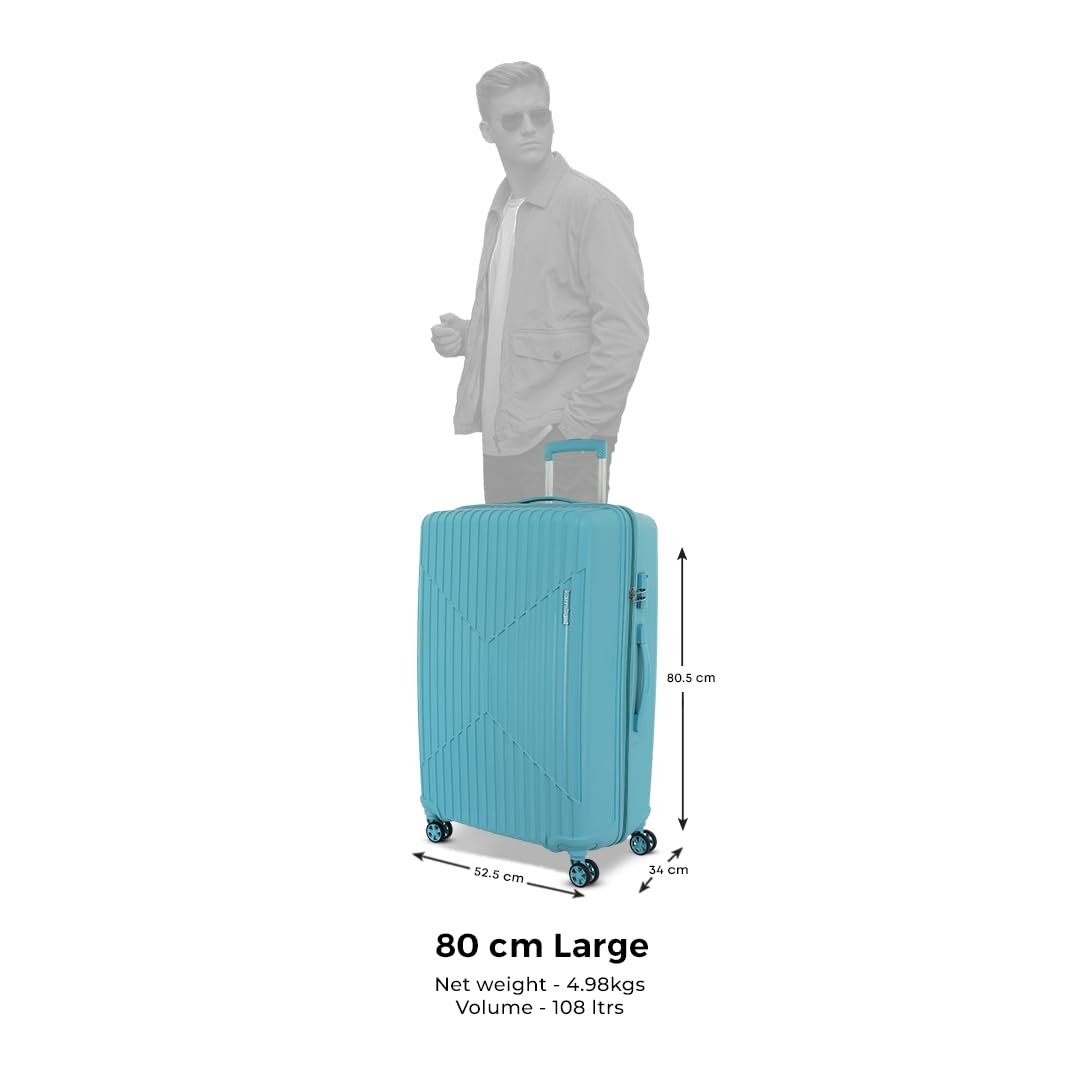 KAMILIANT by American Tourister Savvy 3 Pc Set 55 Cms, 70 Cms & 80 Cms – Small, Medium & Large Polypropylene(PP) Hardside 8 Wheels Spinner Luggage Set/Trolley Bag Set (Sea Blue)
