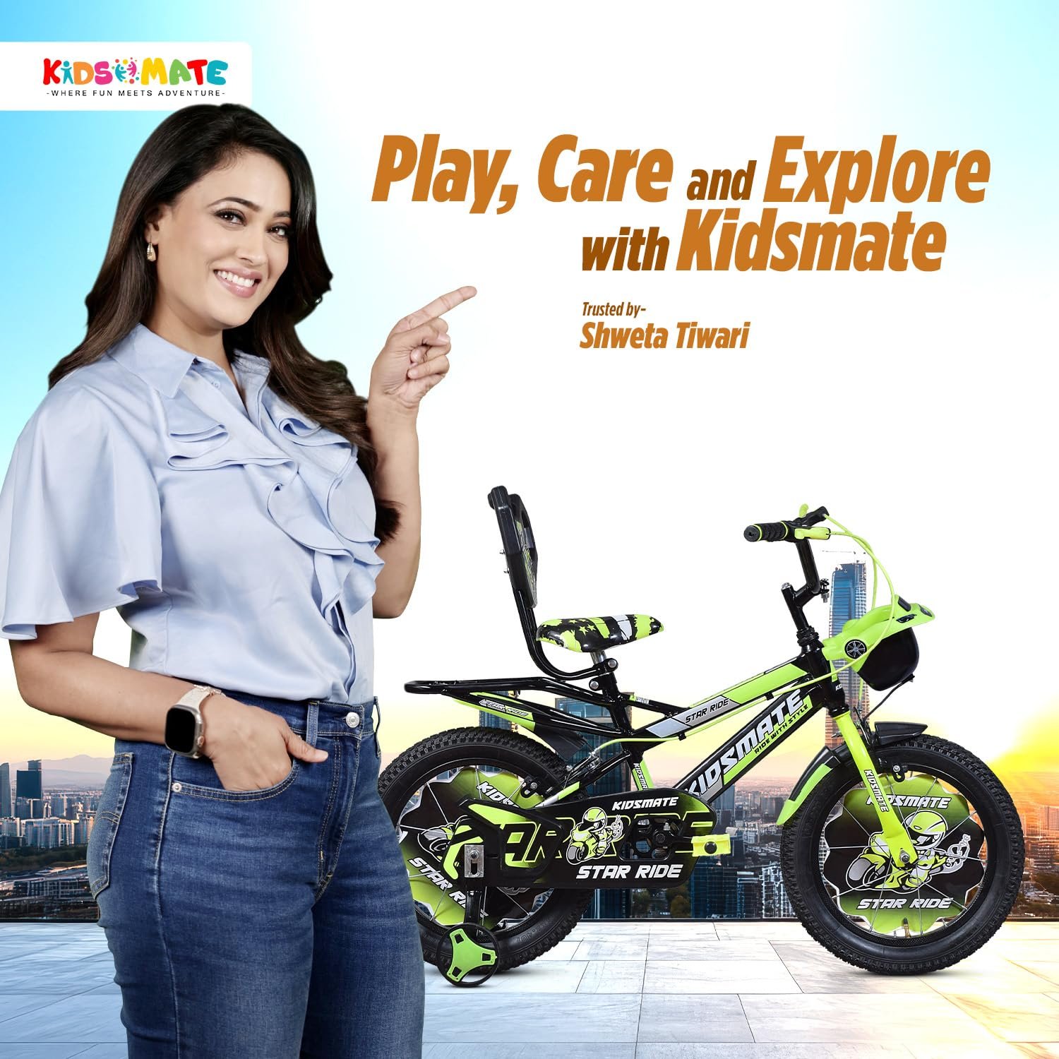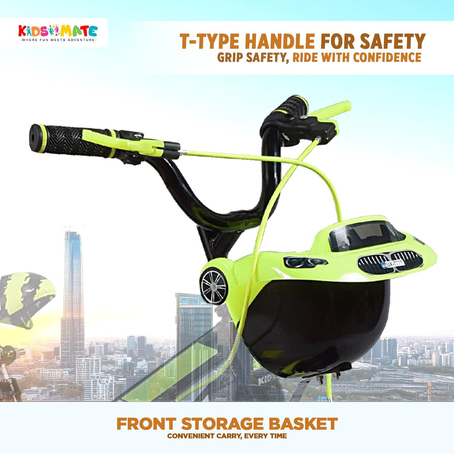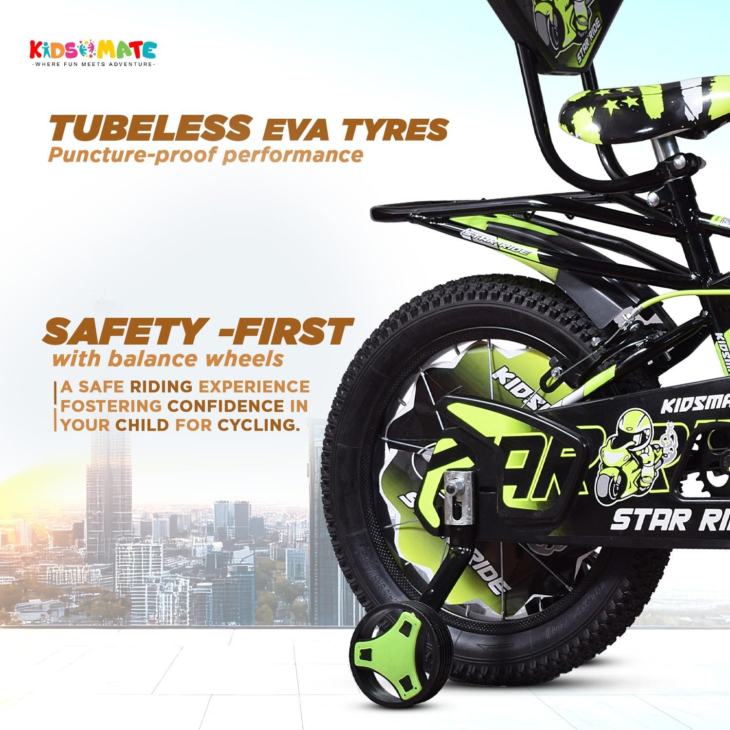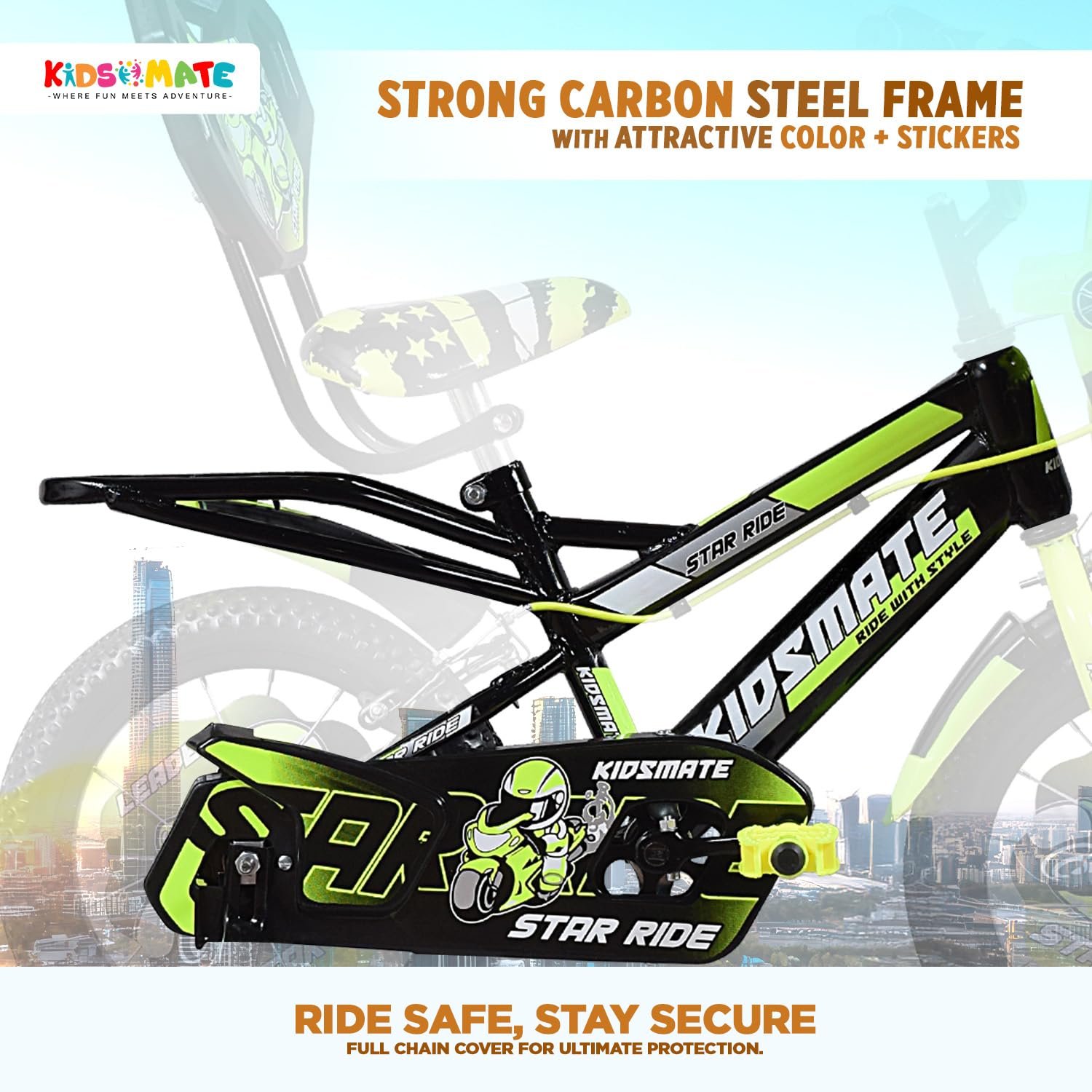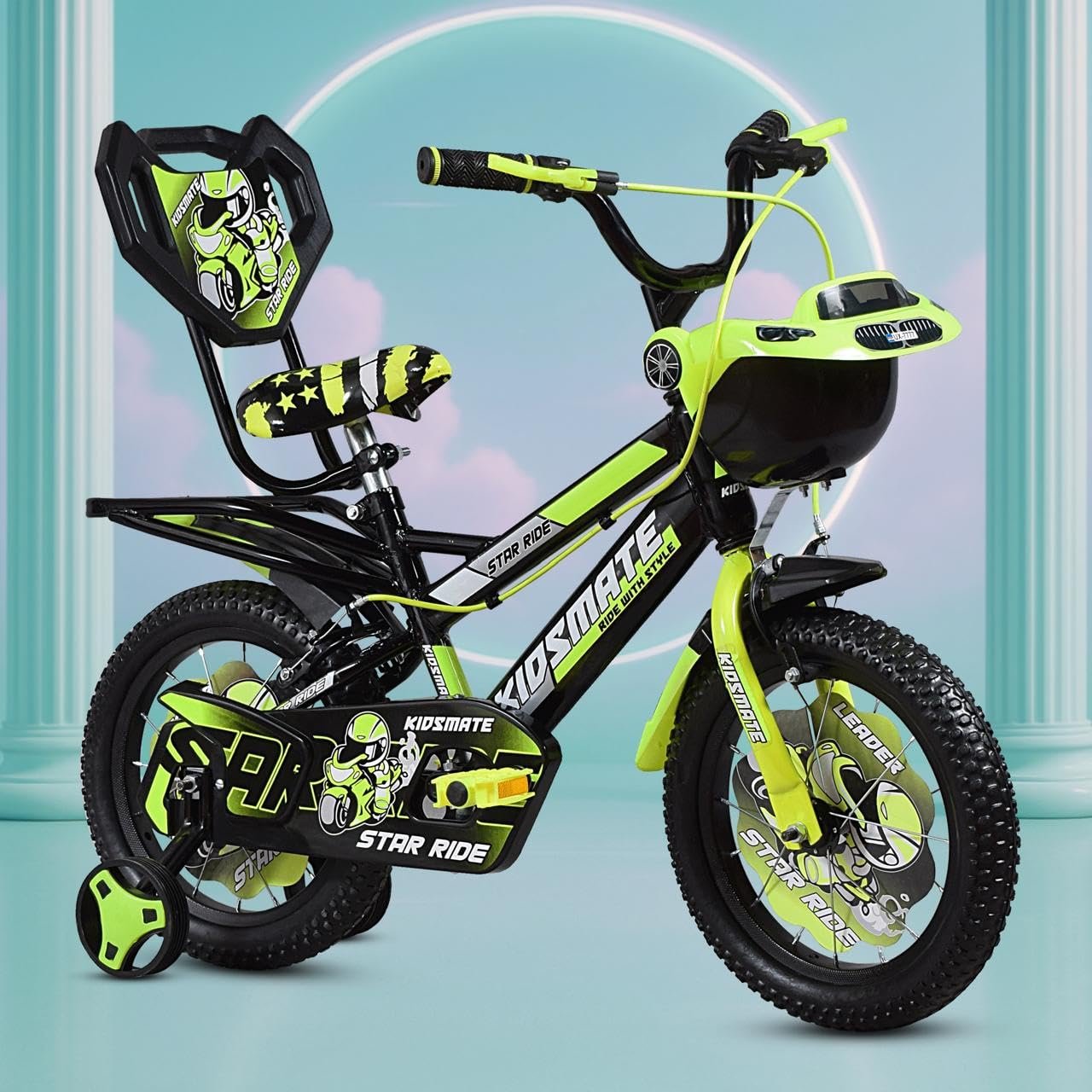Be the first to review “Kidsmate Star Ride 16T Kids Bicycle with Training Wheels | Cycle for Kids Featuring Front Basket, Adjustable Seat & Strong Steel Frame | Perfect First Ride Kids Cycle for 5-8 Years – Neon Green”