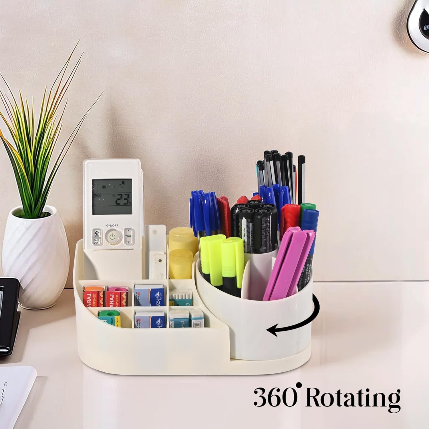 Be the first to review “Kuber Industries Aesthetic 360 Degree Rotating Stationery Desk Organiser for Office Table | Stylish Study Room Accessories for Students | Table Organiser, Pen Stand & Holder | Off White”