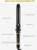 Lanvier 1.25 Inch Clipped Curling Iron with Extra Long Tourmaline Ceramic Barrel, Professional 1 1/4 Inch Hair Curler up to 450°F Dual Voltage for Traveling, Hair Waving Style Tool–Black