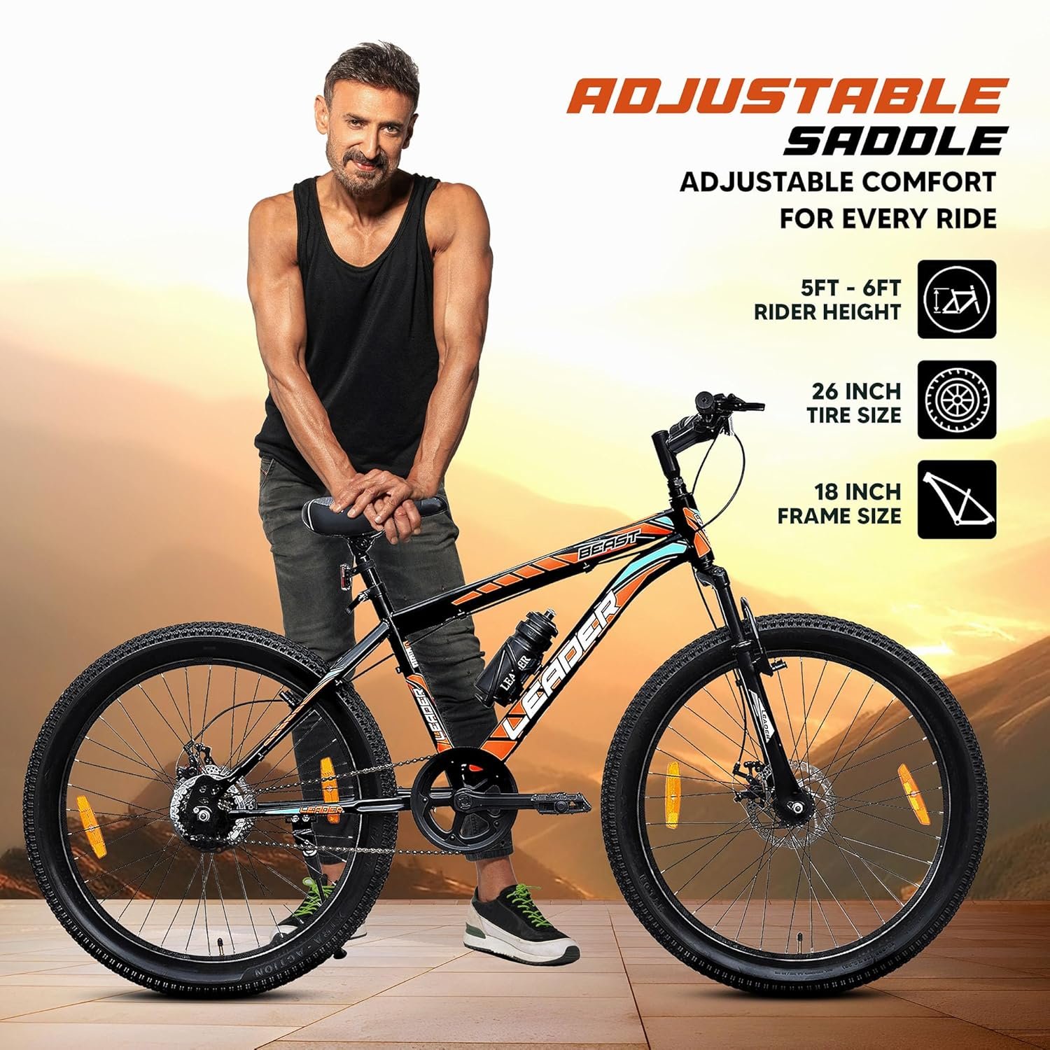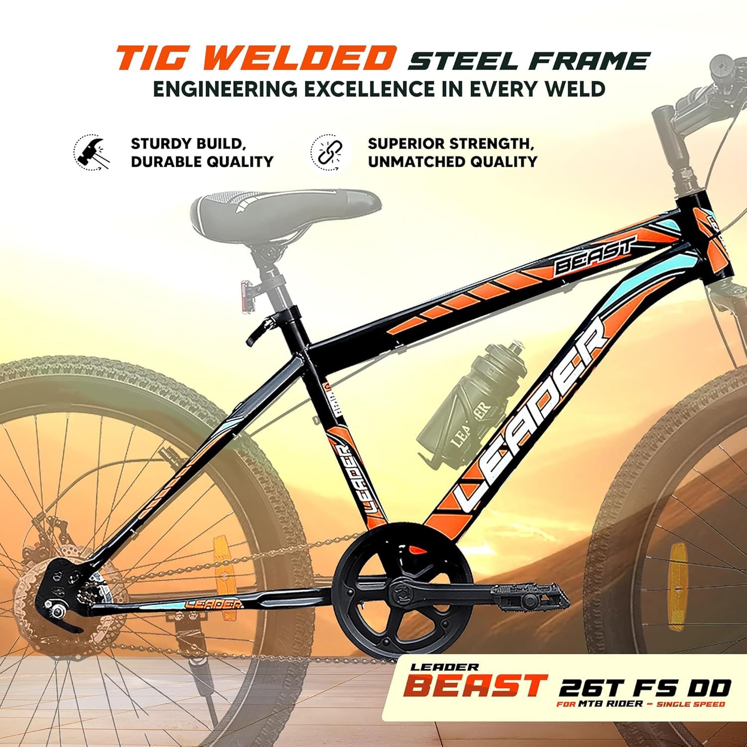 Leader Beast 26T Mountain Cycle for Men with Front Suspension and Dual Disc Brake with Complete Cycle Accessories | Without Gear Cycle – Ideal for 10+ Years (Frame: 18 Inches) (26T, Matt Black)