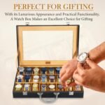 LEDO Leather Men’S And Women’S Watch Box Organizer Case In 10 Slots Of Watches In Black Color (Blackandgray)