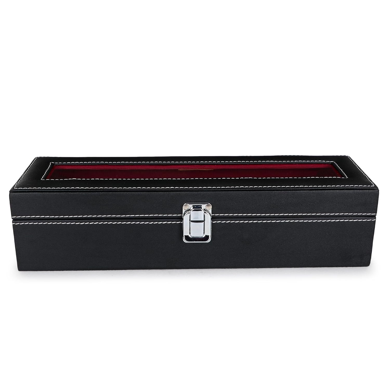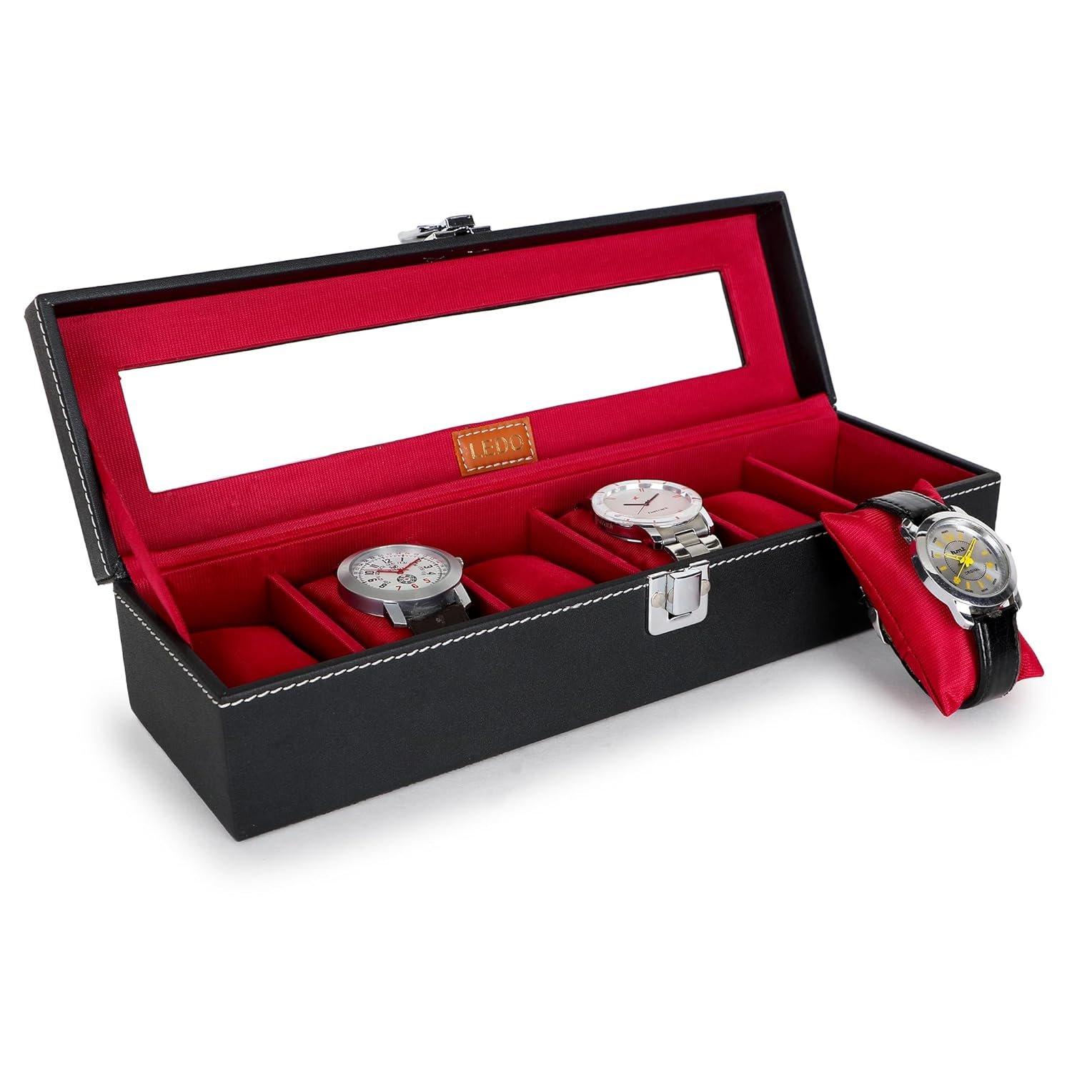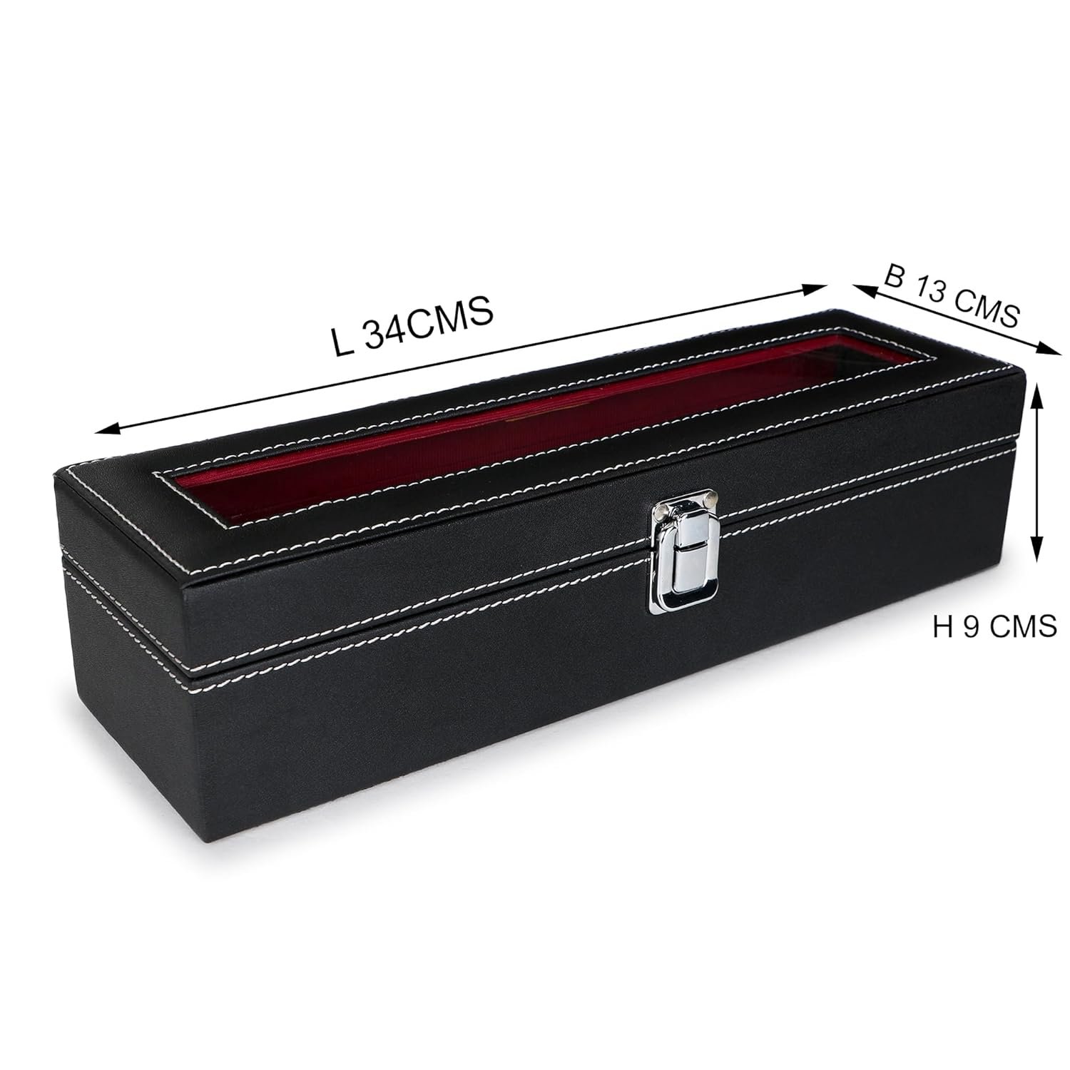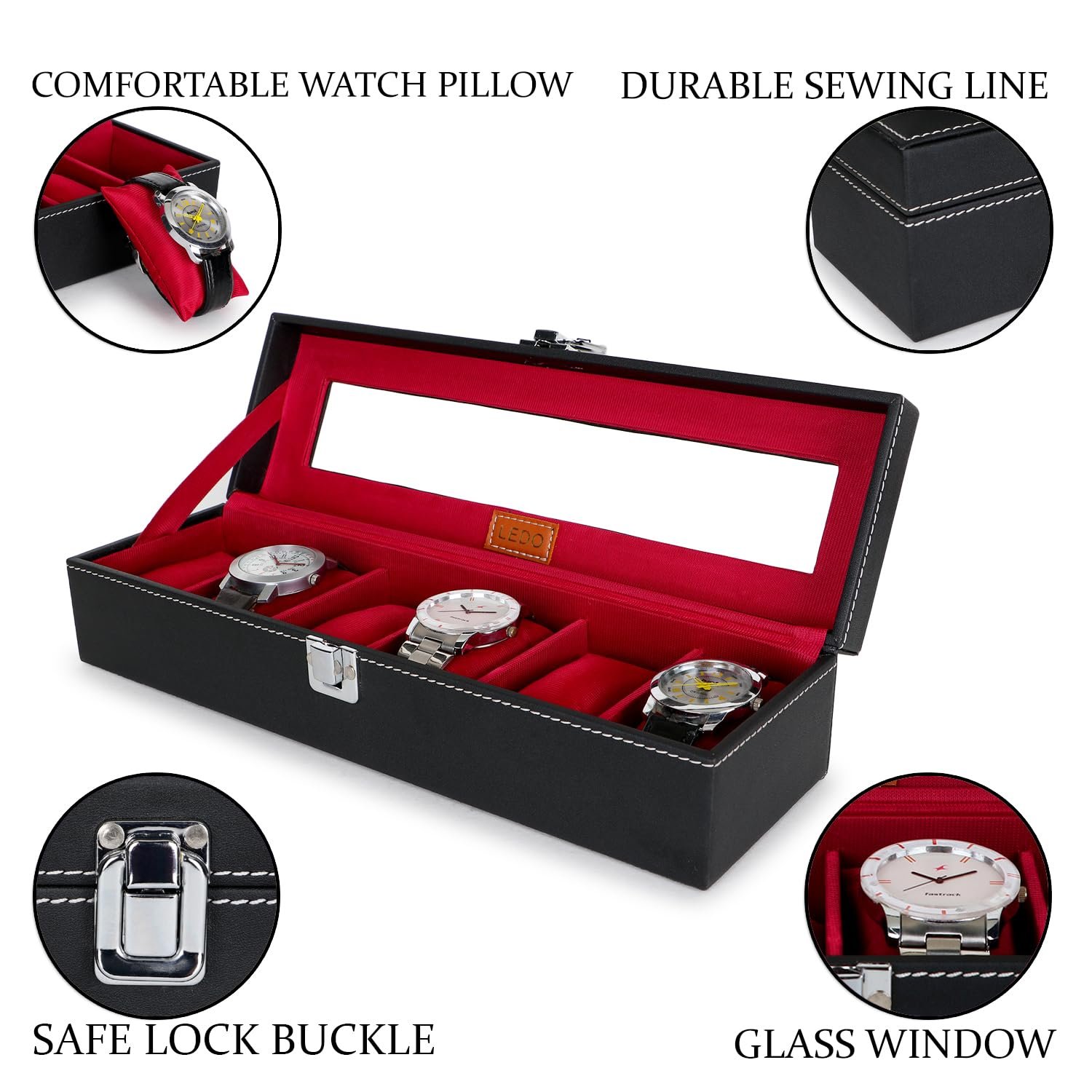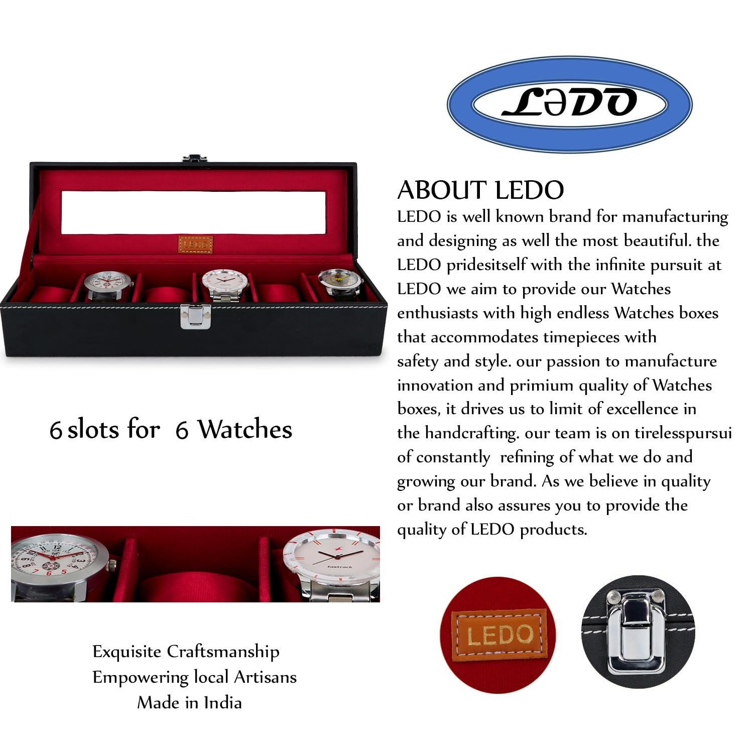 LEDO Watch Box Holder Organizer Case in 6 slots of Watches with Transparent Look Black & Cherry color Velvet