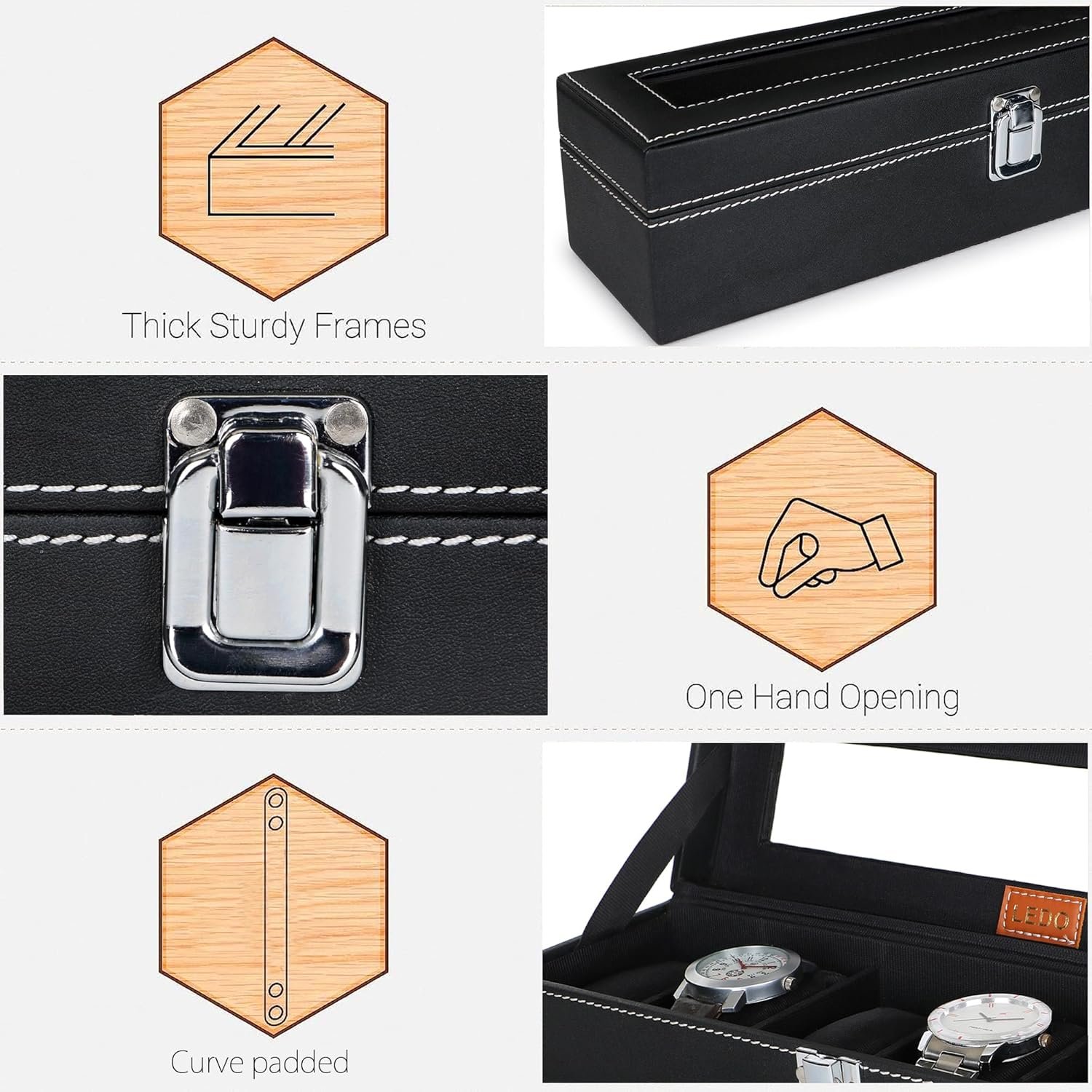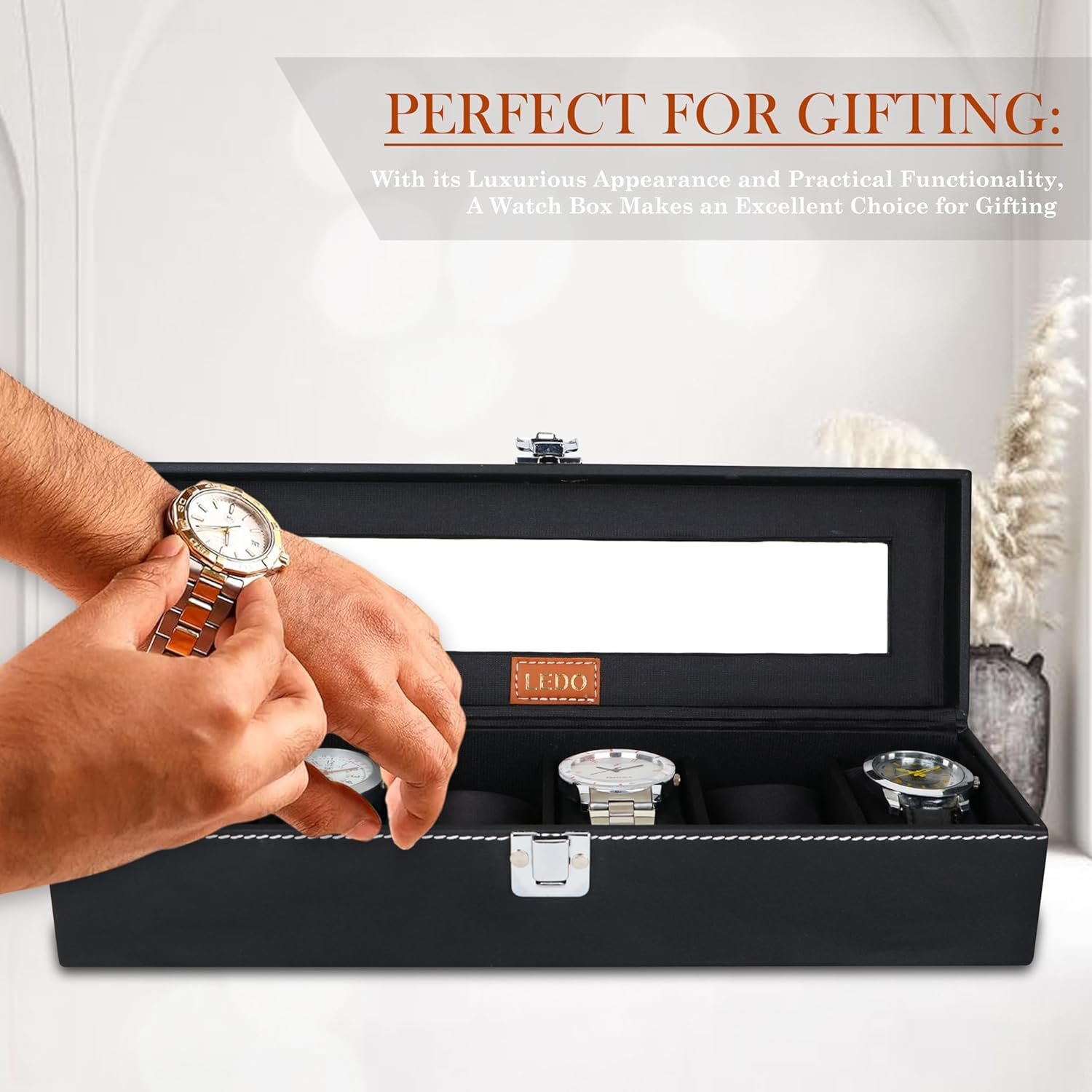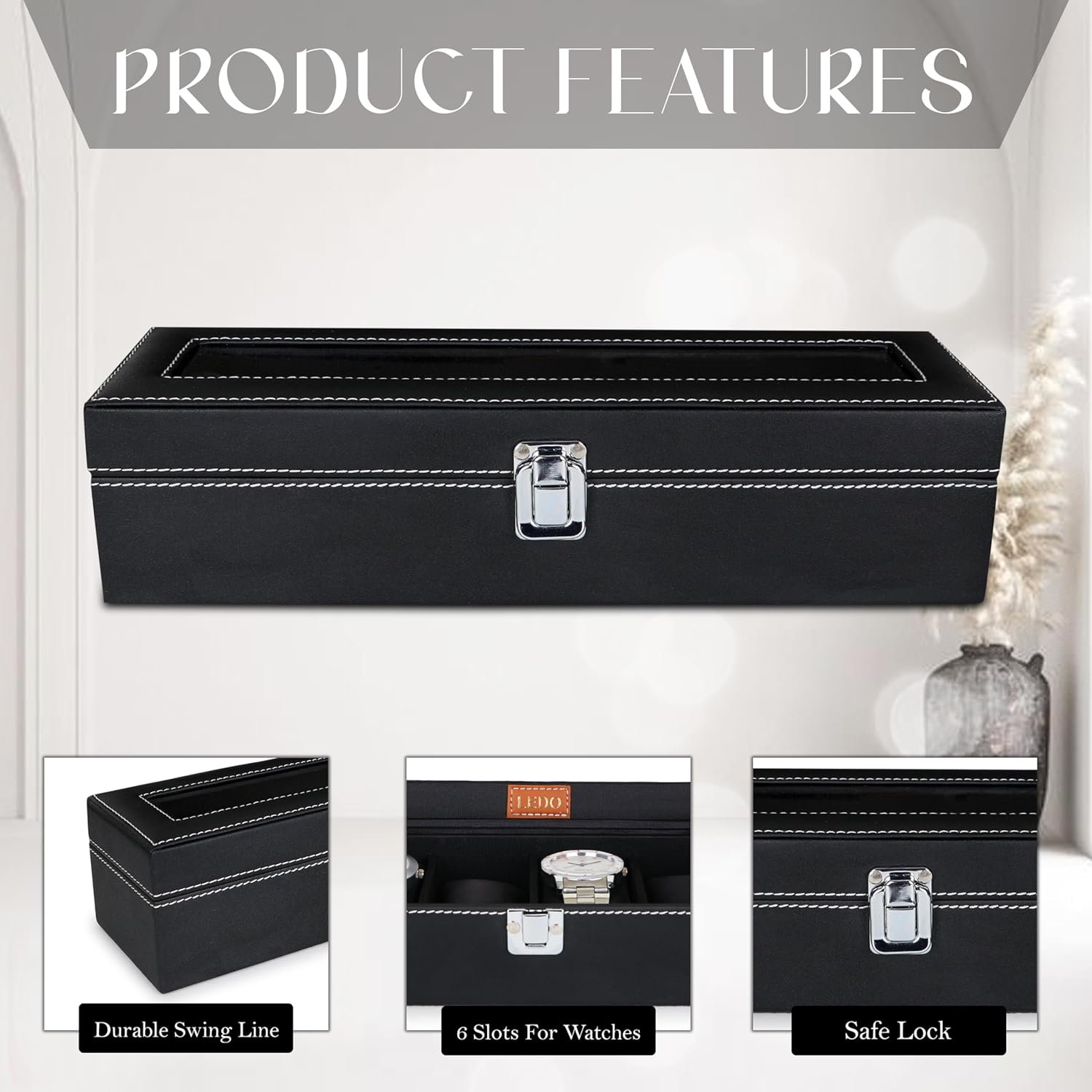 LEDO Watch Box Holder Organizer Case in 6 slots of Watches with Transparent Look Black color Velvet