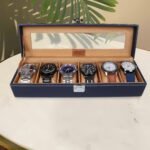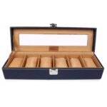 Be the first to review “LEDO Watch Box Organizer Case with 6 Slots, Transparent Display, PU Leather Exterior, Blue & Cream Velvet Interior, Metal Clasp Lock, Rectangular Storage Case for Men”